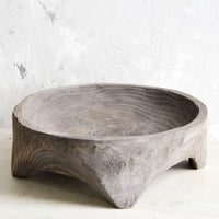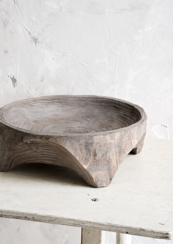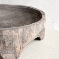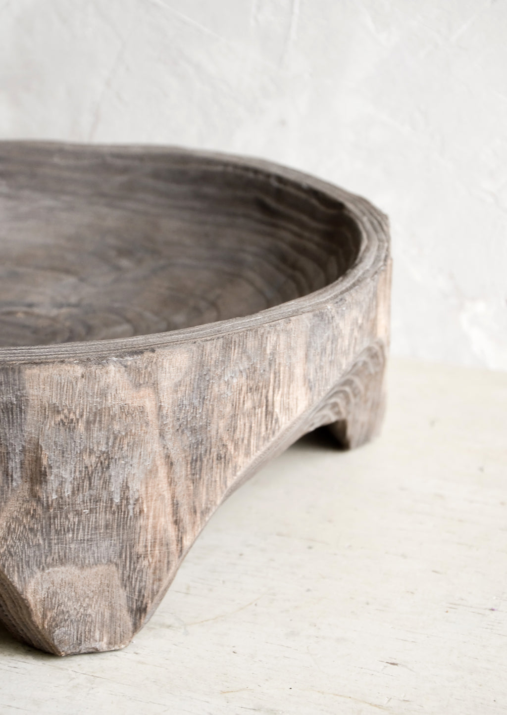 Inspired by an antique find, this carved wooden bowl serves up a ton of character. Showing off a footed base and a wide surface, it's perfect as a decorative object or used as a fruit bowl.