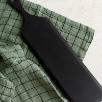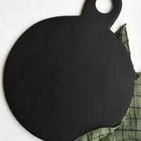 In the moodiest black hue, this wooden cutting board sets a striking tone for both serving and food prep, offered in three versatile shapes and sizes.