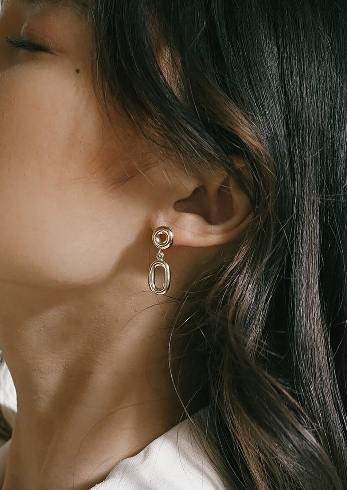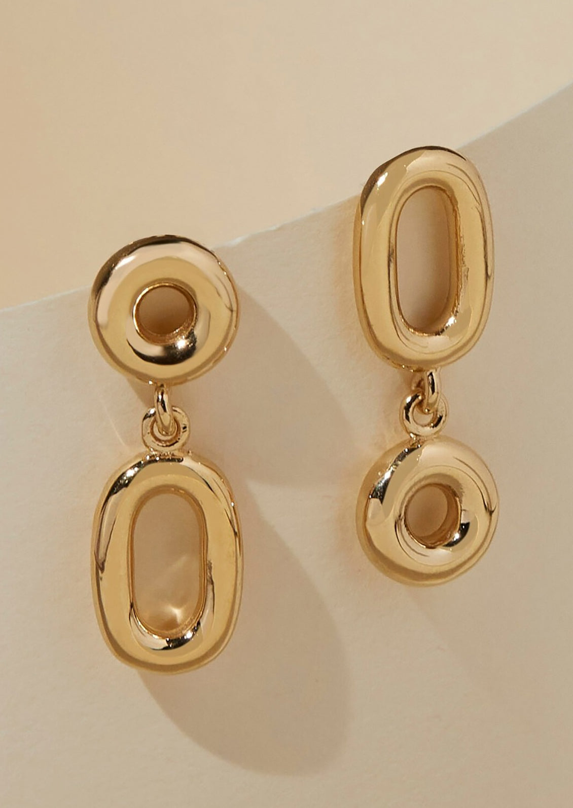 Creating a mirrored image of opposite pairings, these asymmetrical earrings show off a high-polish sheen.