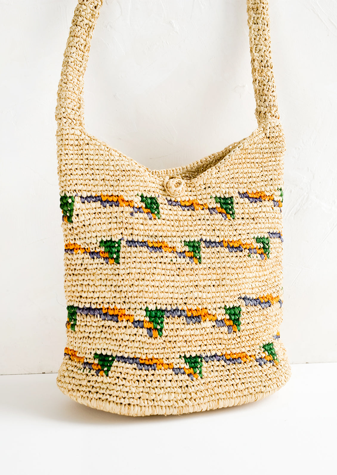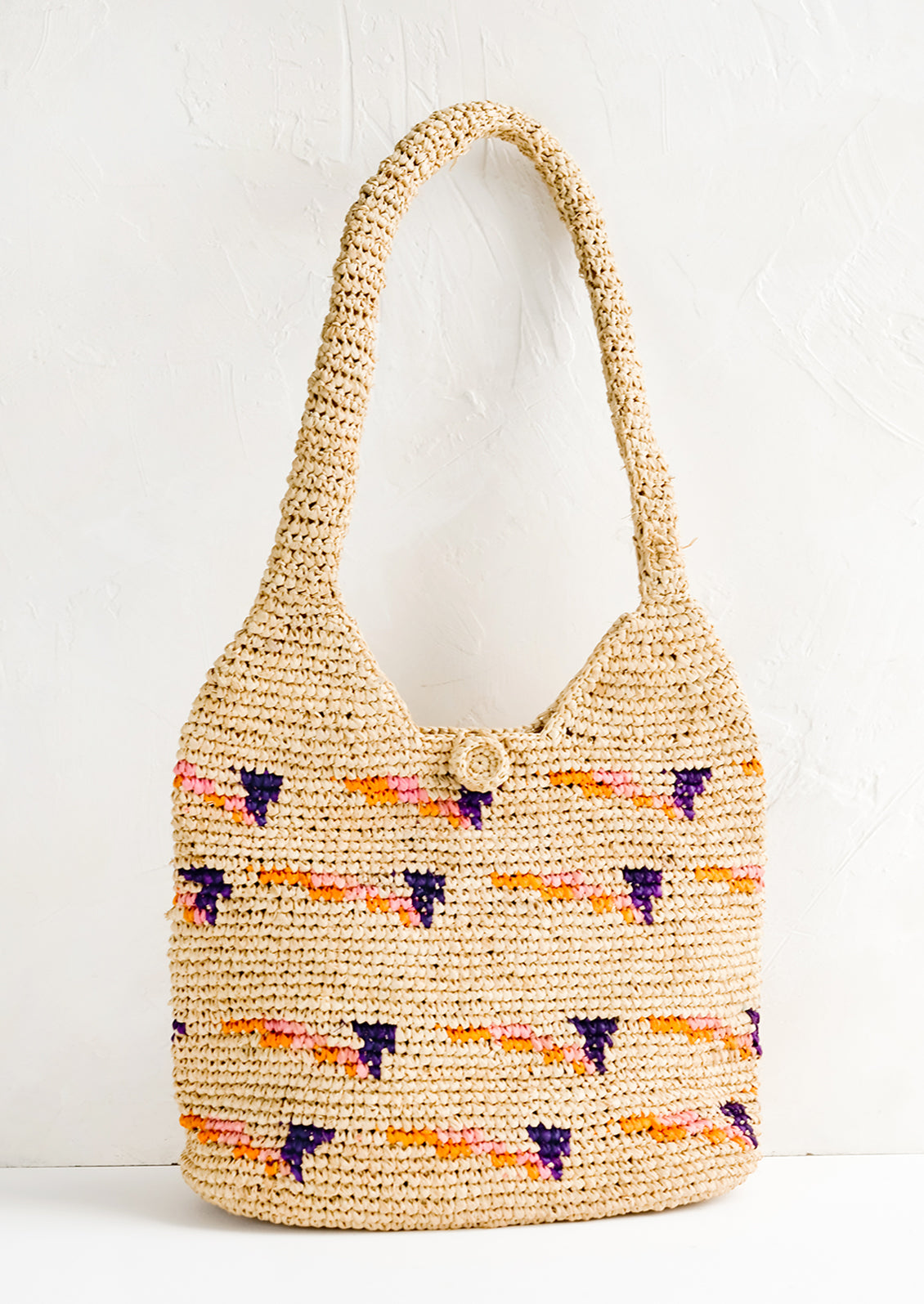 In the perfect size for everyday (a generous size big enough for essentials), this natural raffia hobo shows off just a hint of color.
