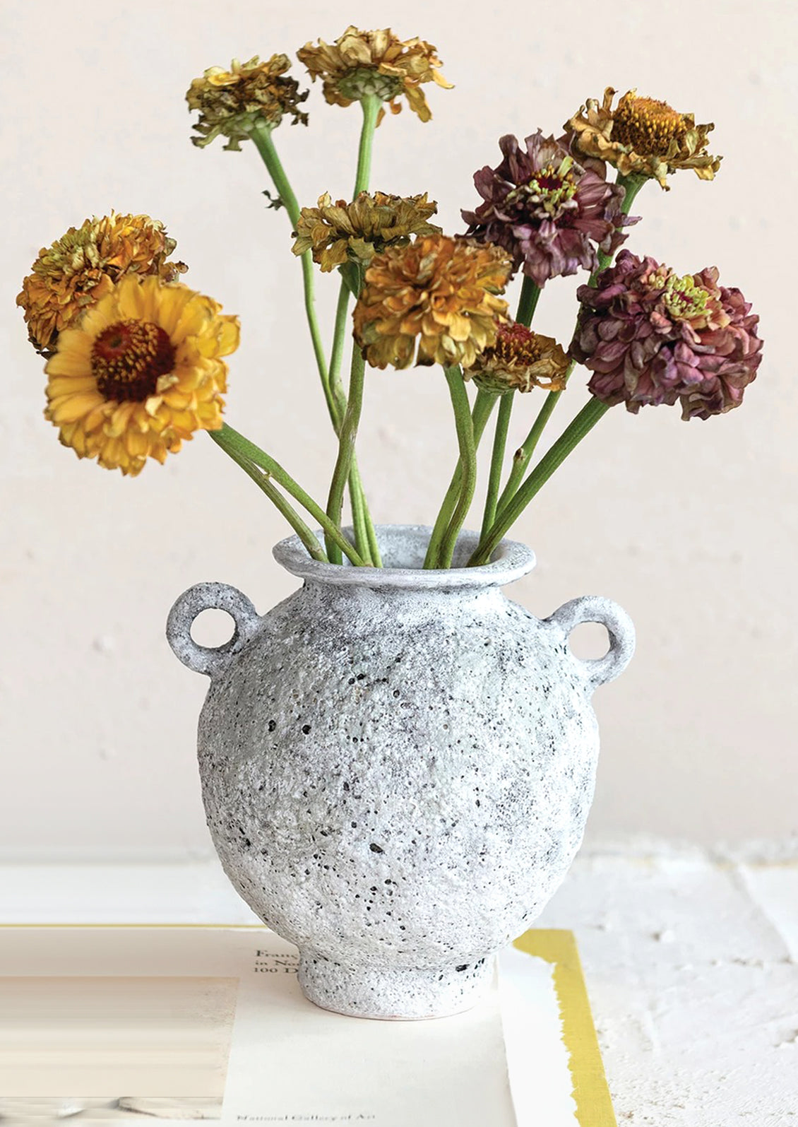 A craggy, volcanic glaze gives lunar-like texture to this perfectly proportioned vase, in the perfect everyday size for a regular rotation of seasonal stems.
