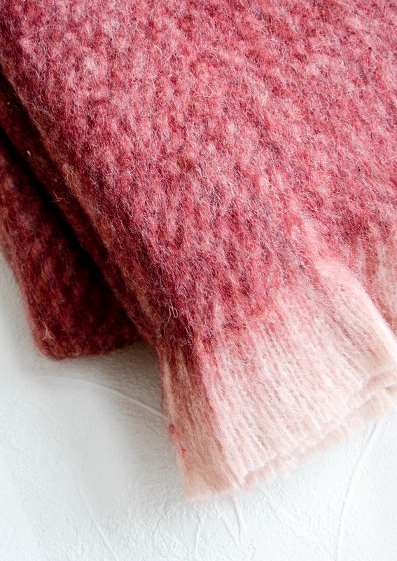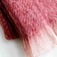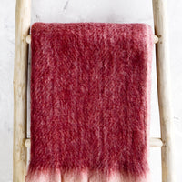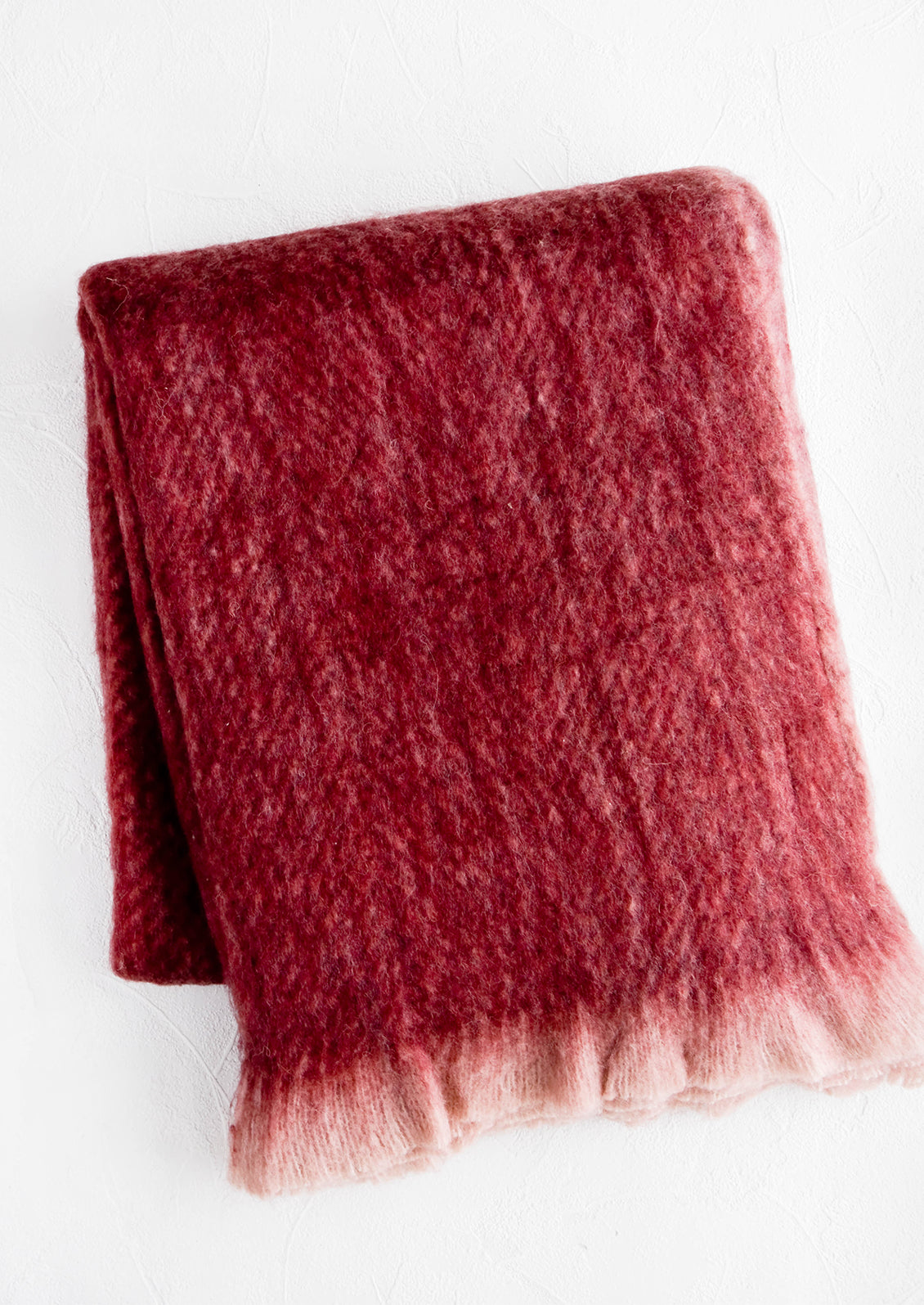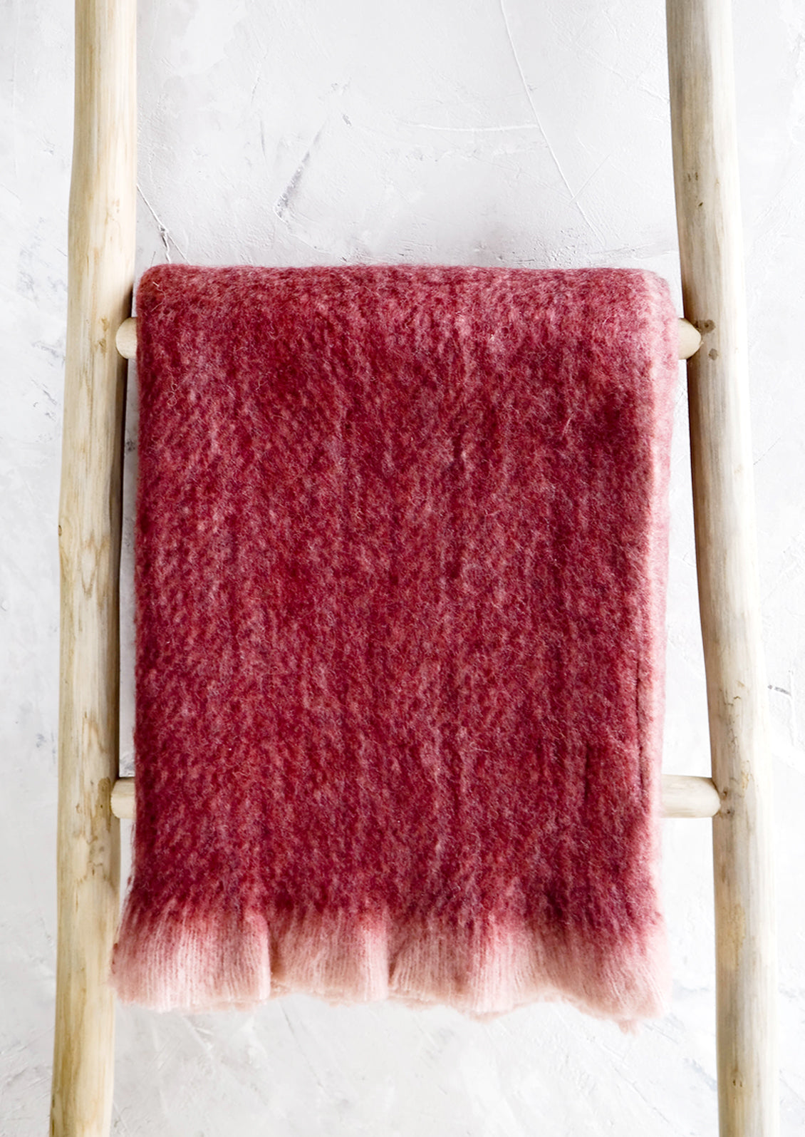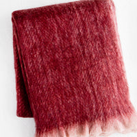 In an ultra plush, mohair-like knit, this exceedingly cozy blanket exudes a rich, jewel-tone hue and a frayed trim with an ombre-esque effect.