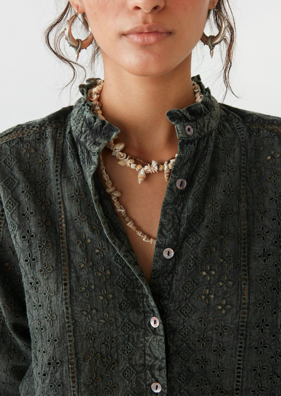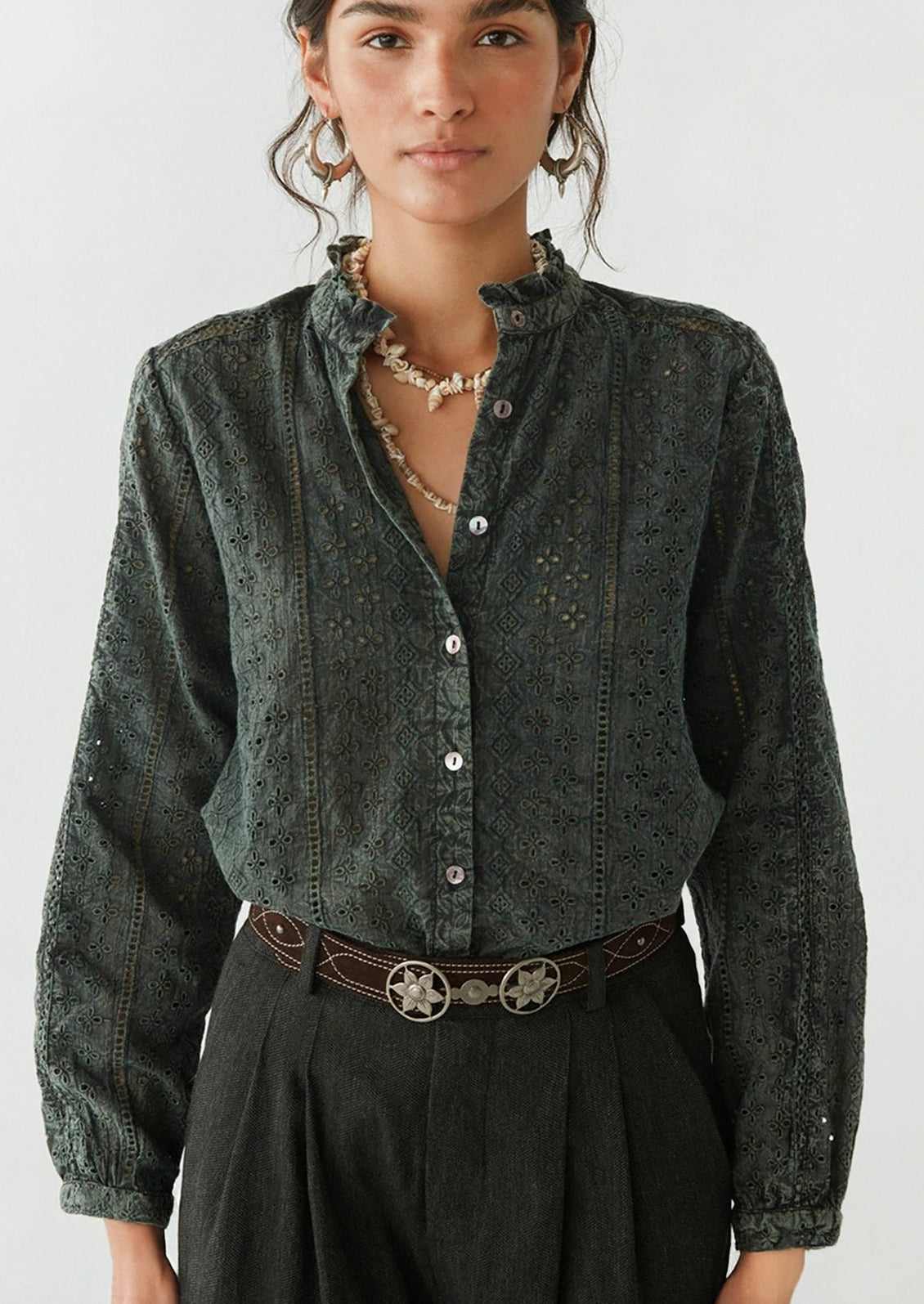Crafted in stonewashed cotton with a deliciously lived-in feel, Maison Hotel's "Mathilde" blouse features intricate eyelet detailing on a silhouette perfect for every day of the week.