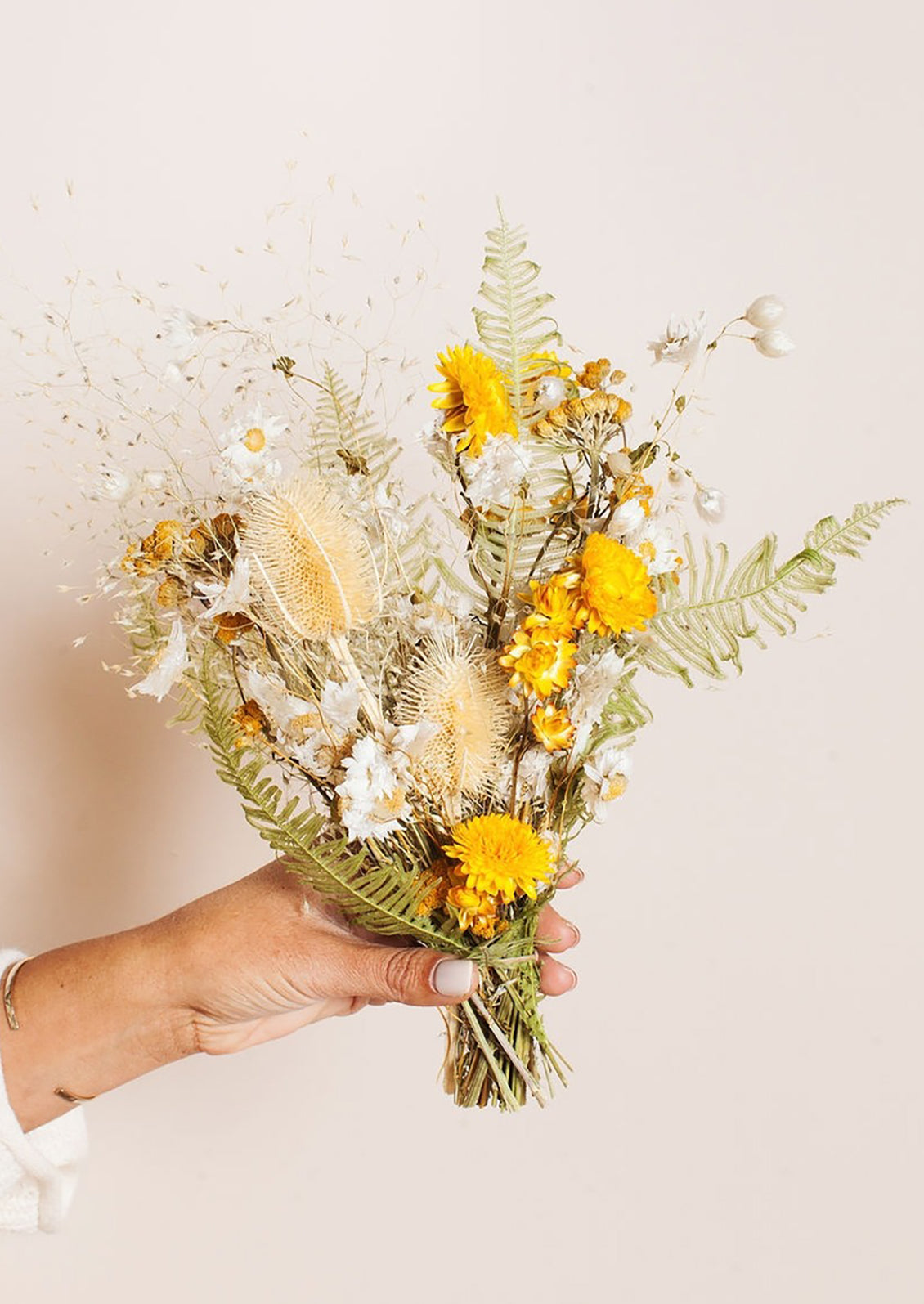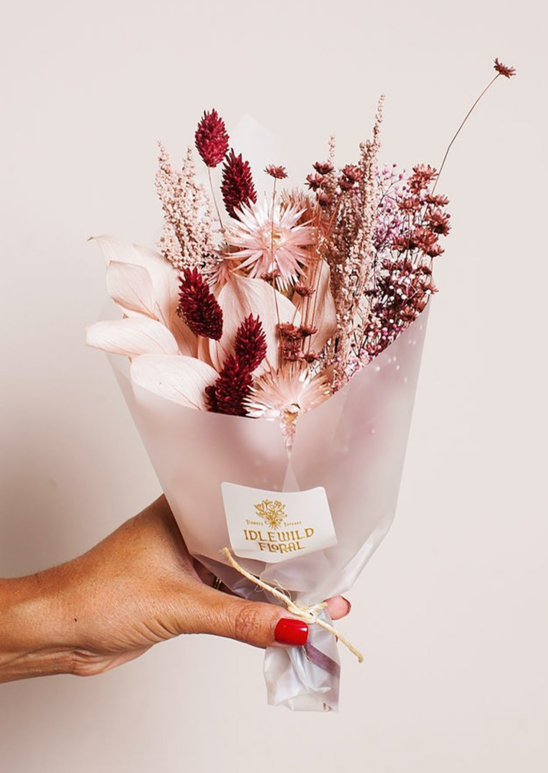 Intentionally chosen and arranged, these curated floral dried bouquets are the perfect everlasting gift (dried flowers will last forever if left largely untouched, out of direct sunlight and away from drafts). Each of these color thematic dried bouquets is arranged in San Luis Obispo, and no two are exactly alike.
