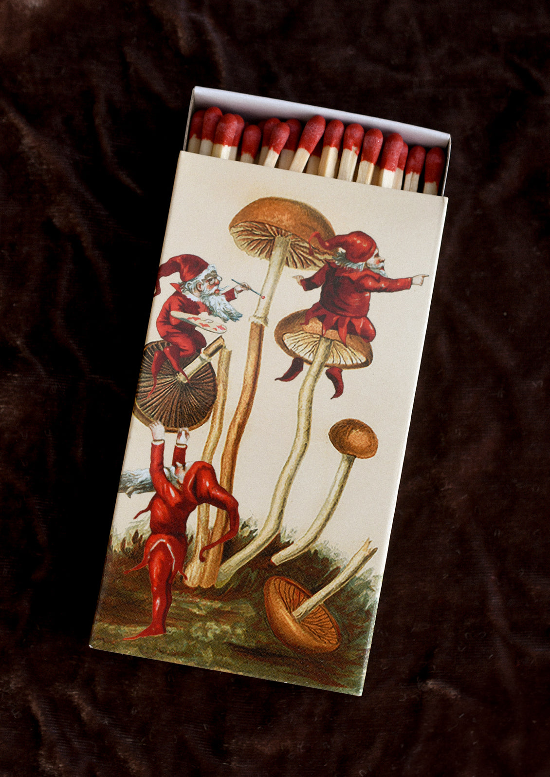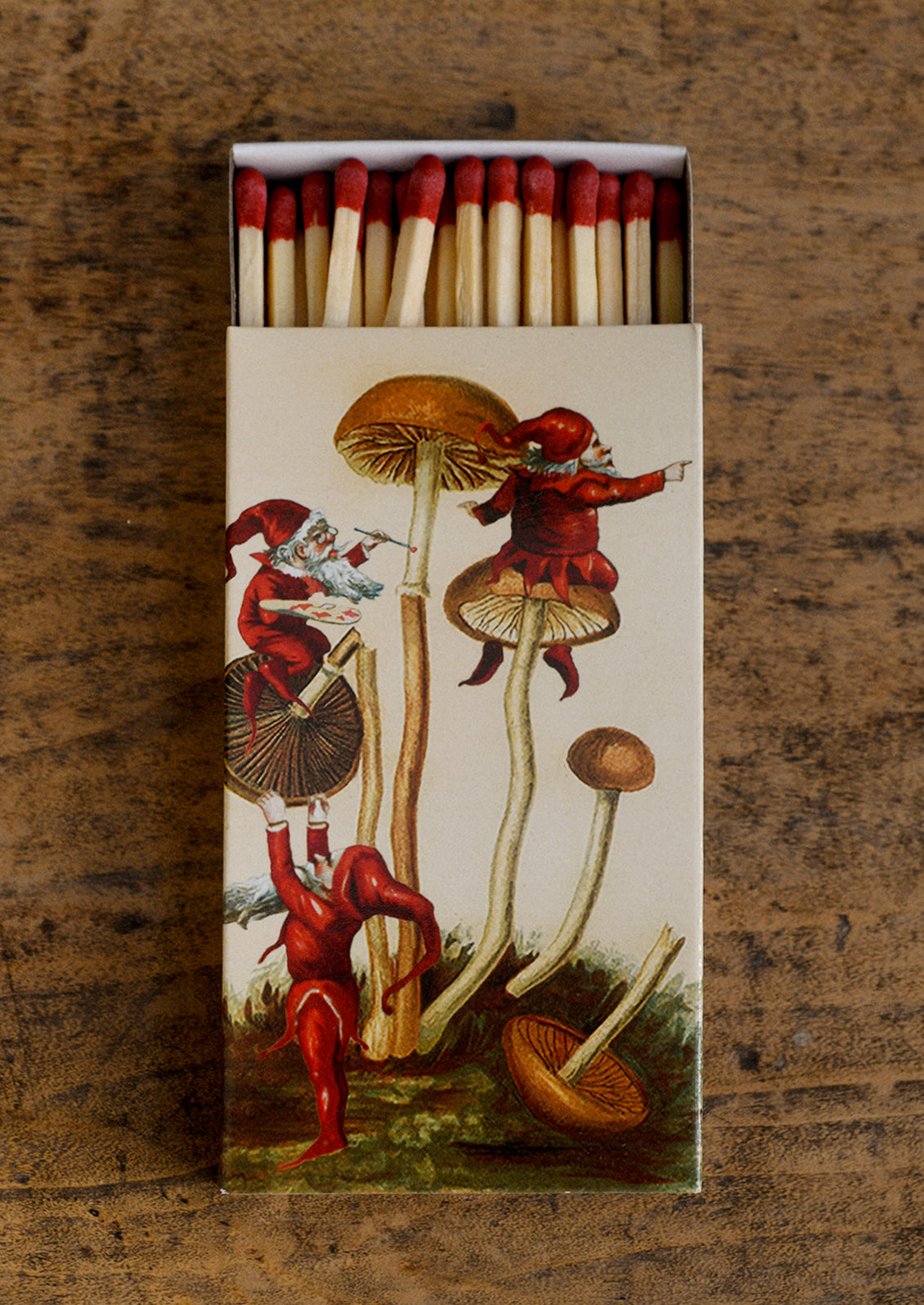 Housing long, red-tipped matches perfect for candle lighting, this playfully printed box of matches lends a little touch of festive.