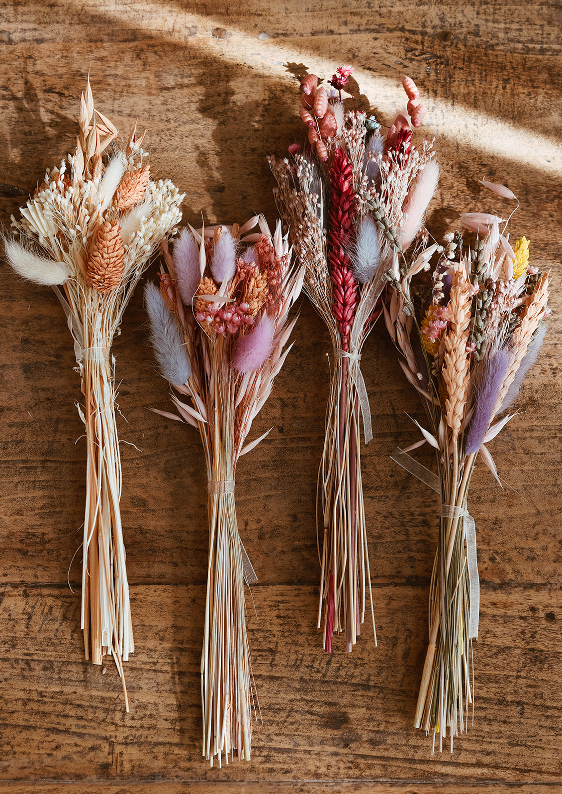 Delightful bursts of color come to (eternal) life on this lasts-forever dried bouquet—just the right amount of stems for your favorite bud vase. Please note each bundle can vary quite a bit from the photos!