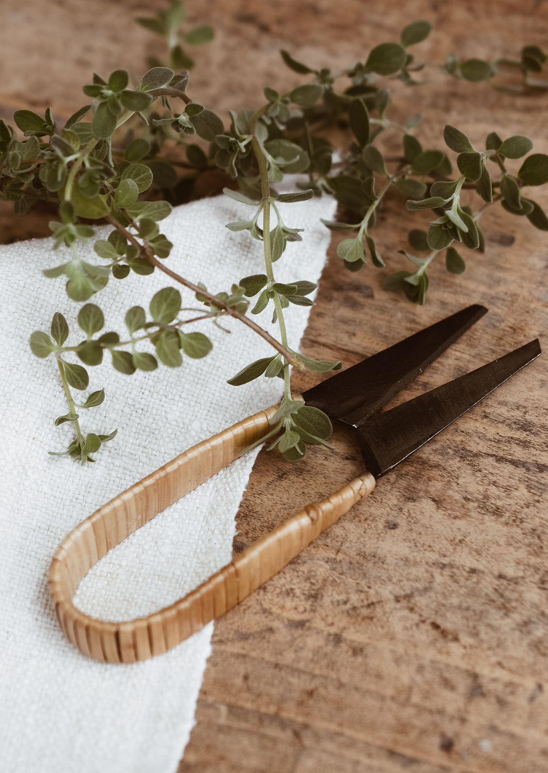 Perfect for snipping herbs on the kitchen windowsill, these petite rattan snips are crafted in solid iron with airy rattan detailing.