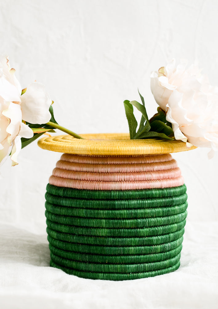 Woven by hand from local sweetgrass, this artful object exudes personality. Use it to style a cabinet or console table, or place a glass vase inside to use it to showcase fresh flowers.