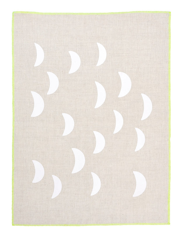 Crescent moons dance around in a lunar-inspired design, locally printed on luxe linen that gets softer with every wash.