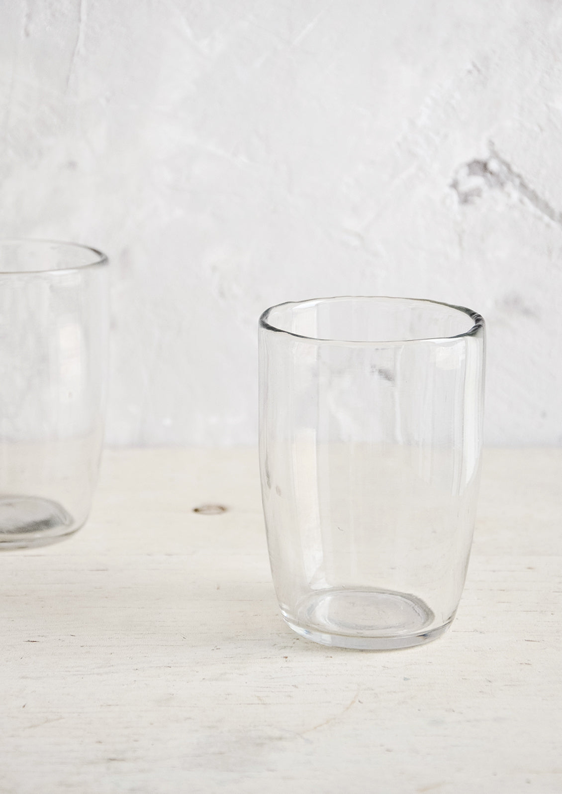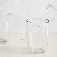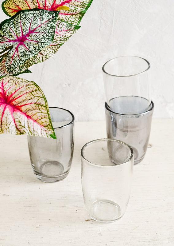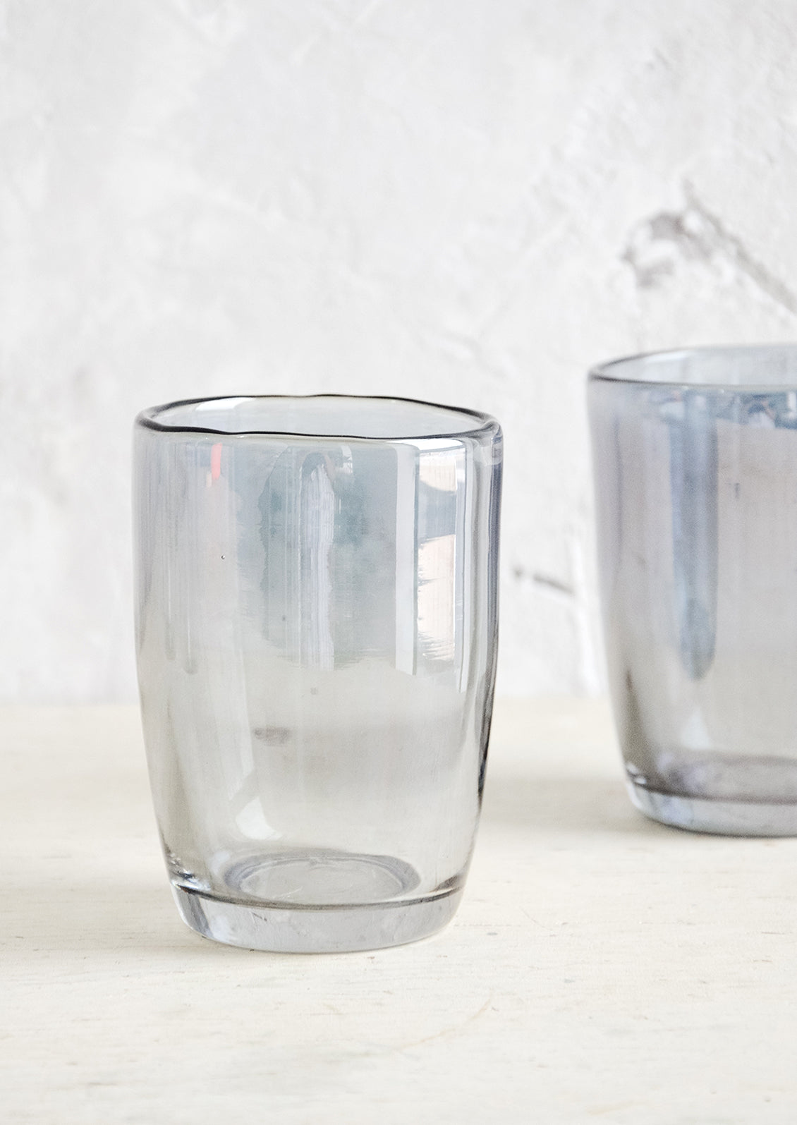 The best thing about these glasses is that each one feels slightly imperfect—a little ripple there, a tiny bubble here—giving them a calm, easy effortlessness. The smoke color has just the slightest hint of an iridescent finish.