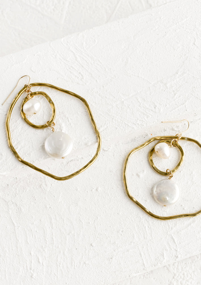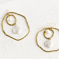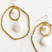 Inspired by the movement of the ocean, these earrings exude effortless elegance. Crafted in pure brass, freshwater pearls float from within organic, hand-formed circles.