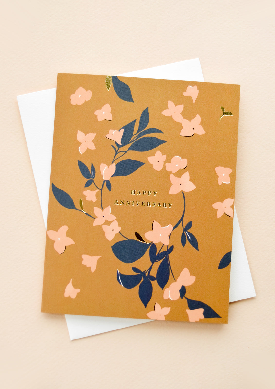 Another year side by side is beautifully celebrated on this ochre-hued card, detailed in decorative golden foil. From Amy Heitman.