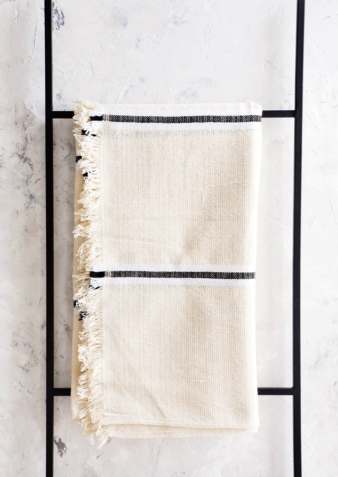 Hand-loomed using a combination of rustic spun cotton and refined cotton twine to create a textural weave, this blanket is easy to care for and perfect for everyday use—the cotton will soften with every wash and take on a softer texture with use.