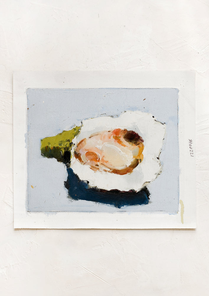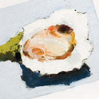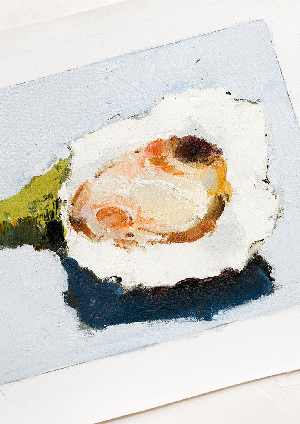 This original oil painting takes a colorful, coastal approach to still life.  Thick, thoughtful brushstrokes, a controlled palette, and timeless imagery allow this painting to exude a certain kind of magic.