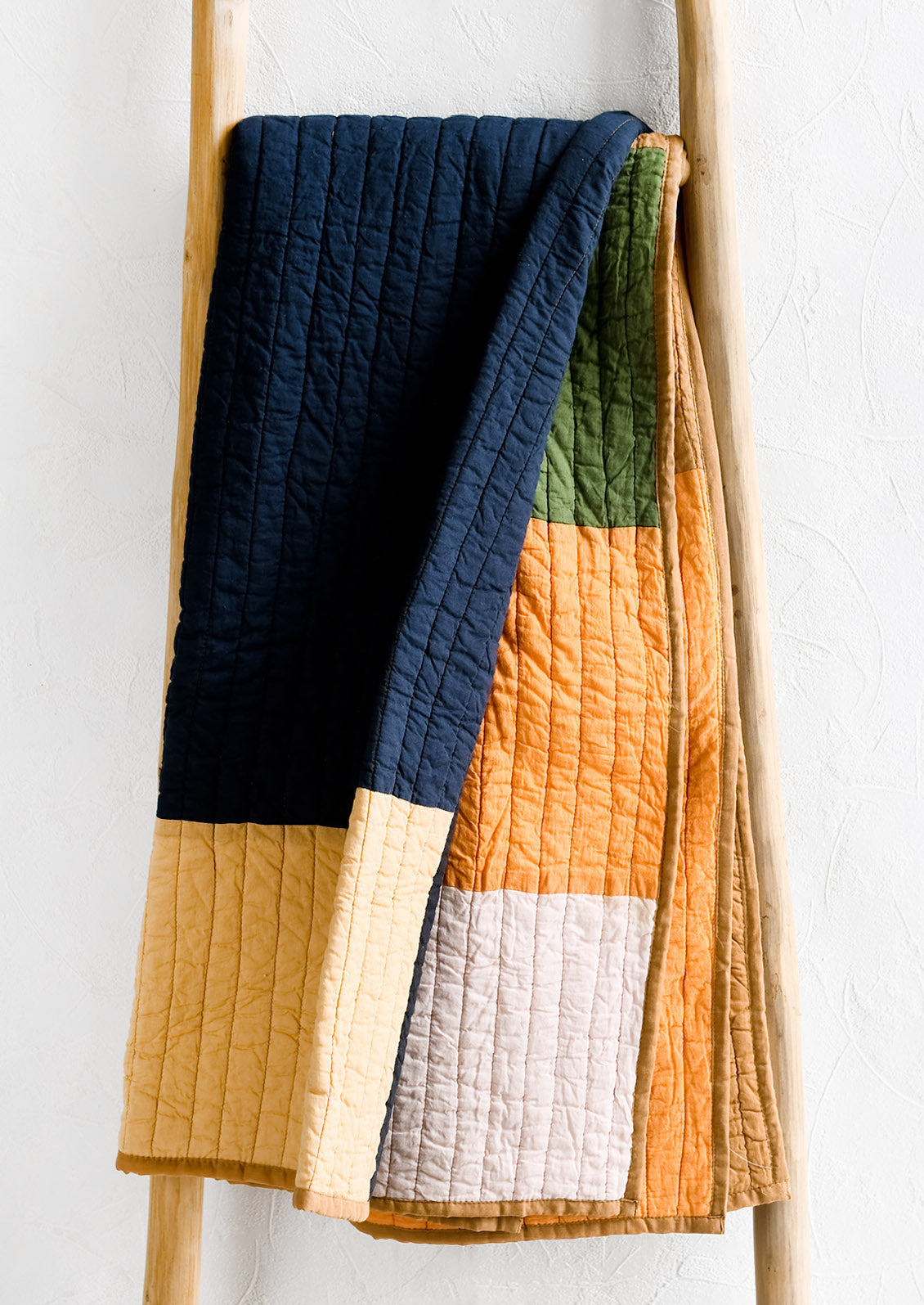 A melange of warm hues comes to life on this channel-stitched quilt, showing off a color blocked composition in pure cotton.