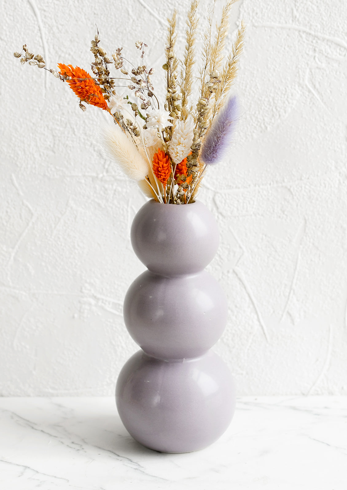 Showing off a playful silhouette, this pastel-hued ceramic bud vase flaunts a candy-like look—pair it with a small bundle of dried florals for no-maintenance decor.