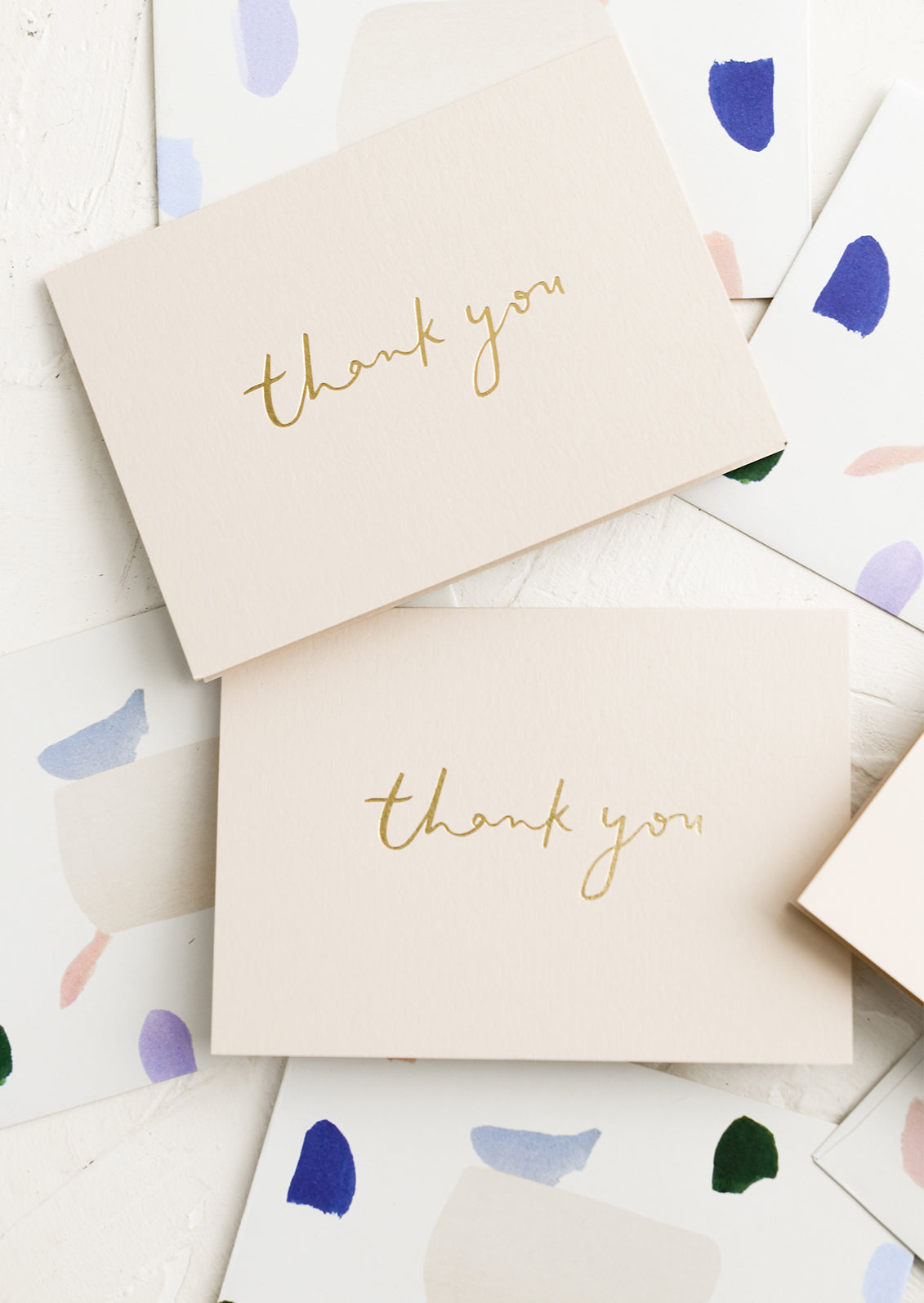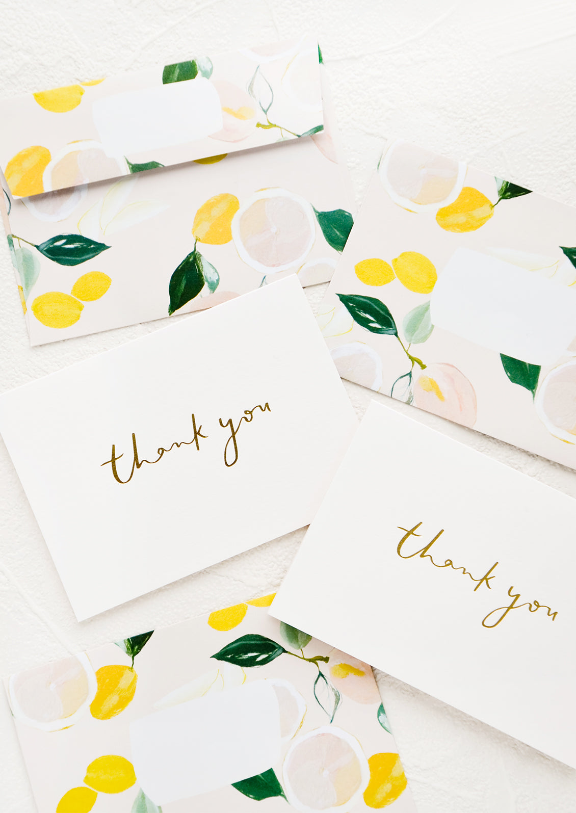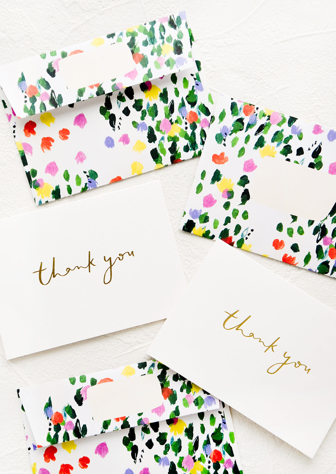 This set of cards shifts the spotlight to the envelopes—equipped with pretty patterns and golden script, they become mailable art.