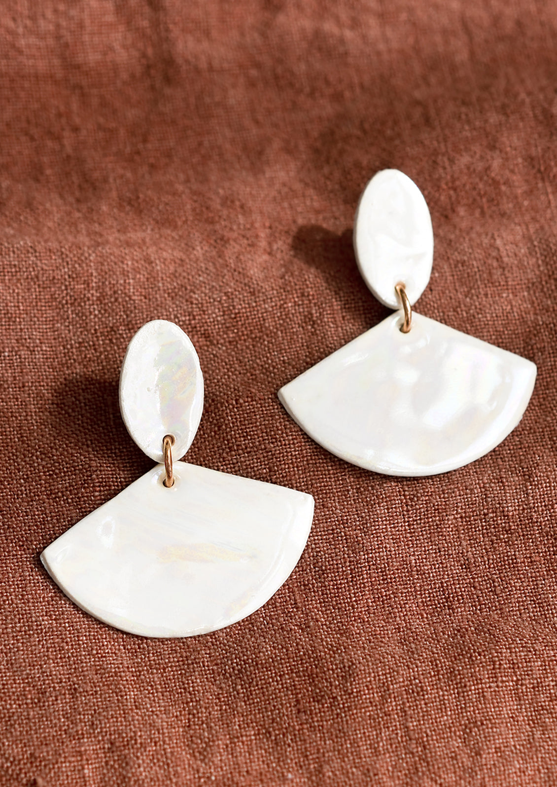 With an iridescent pearl finish that only becomes more magical in real life, these delicate handmade earrings exude an ethereal look.