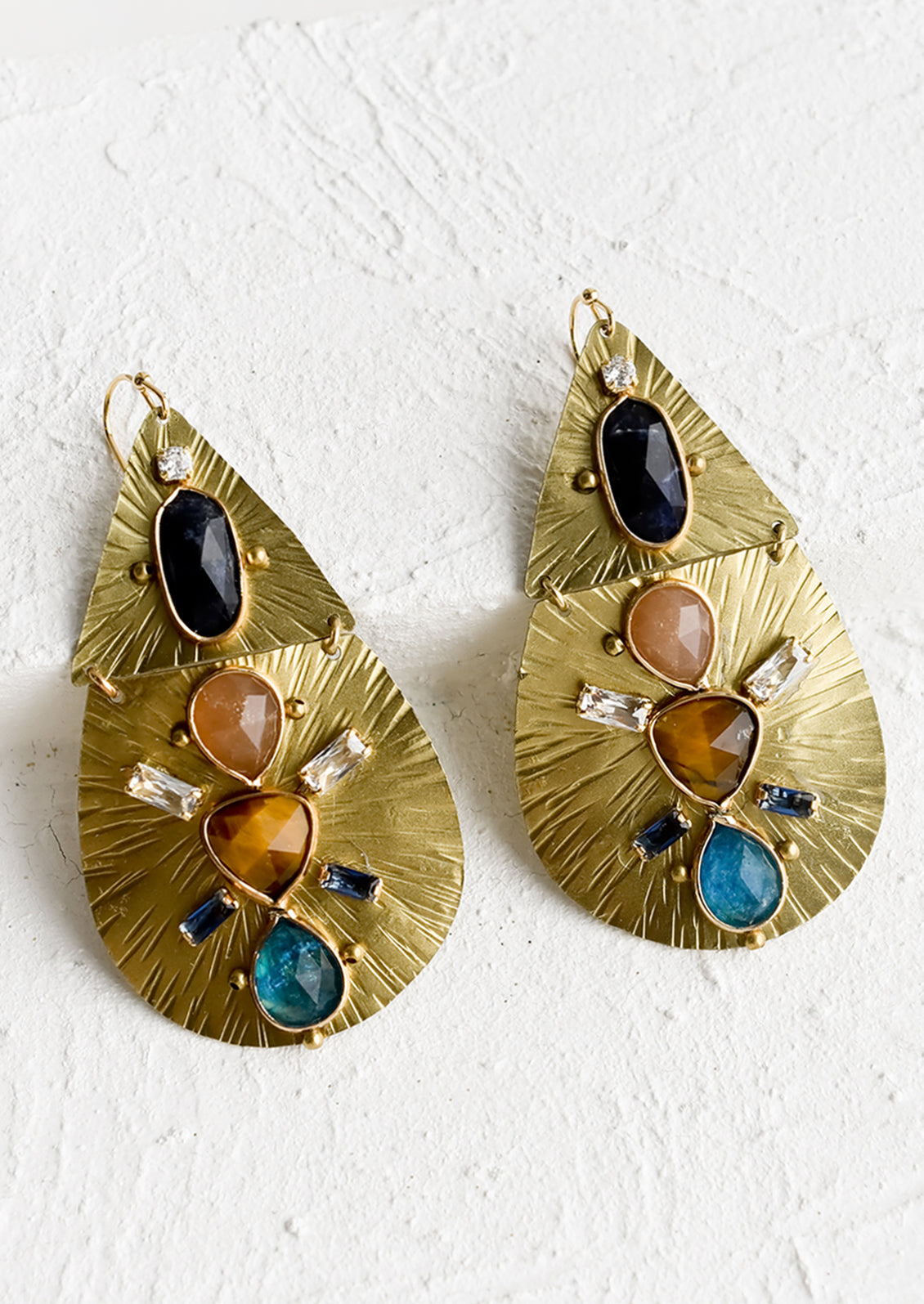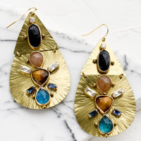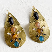 A sparkling landscape of gemstones and crystals decorates a gilded teardrop silhouette in a size meant for statement-making.