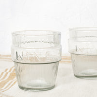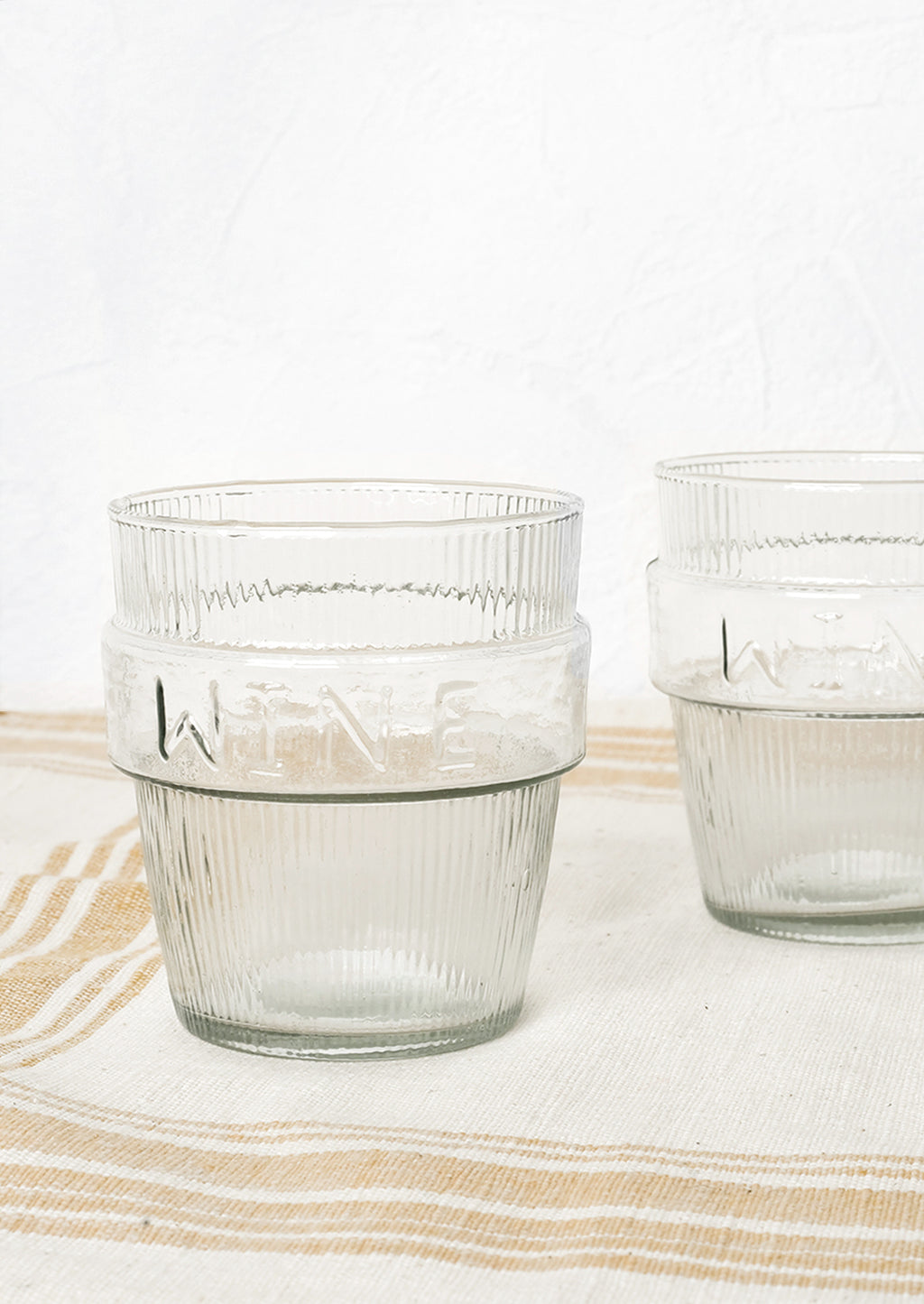 We're ditching the stemware for this far more leisurely, laidback drinking vessel—for your glass of red, white or orange, kick your feet up with this ribbed glass cup.