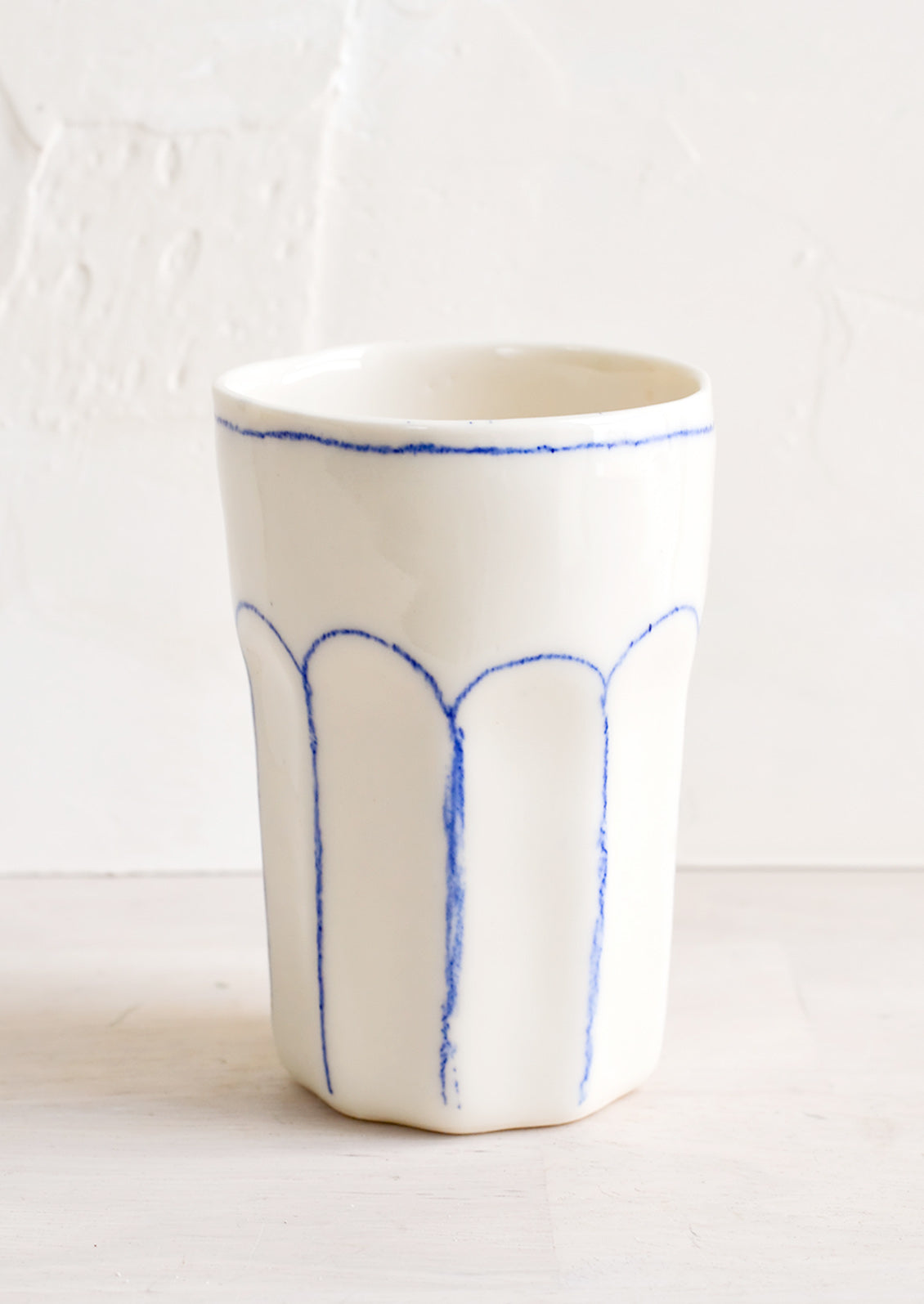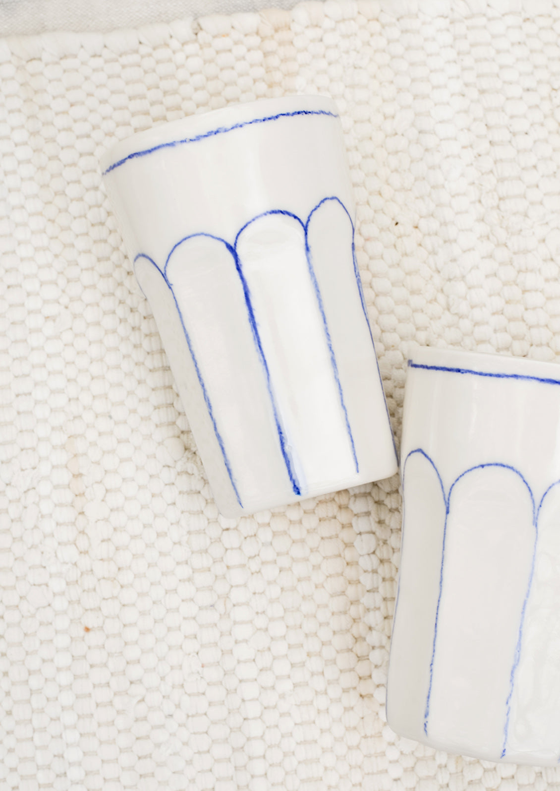 A playful take on the traditional French drinking glass, this ceramic tumbler flaunts hand-drawn lines silhouetting their shape (no two are exactly alike). From Catherine Rex.