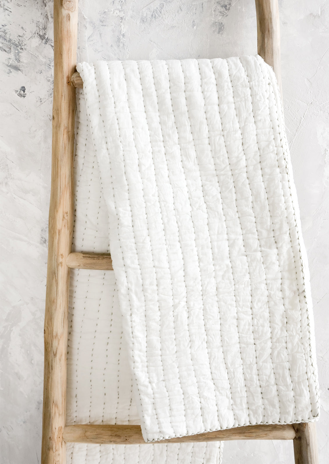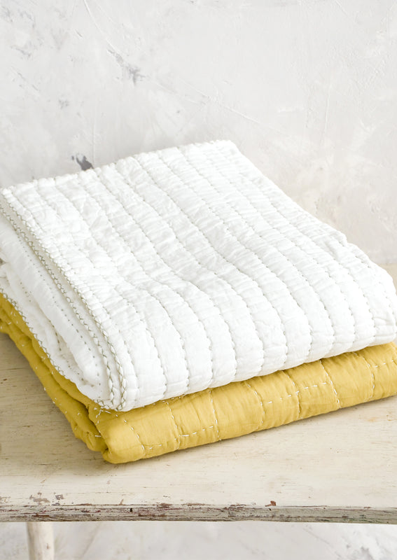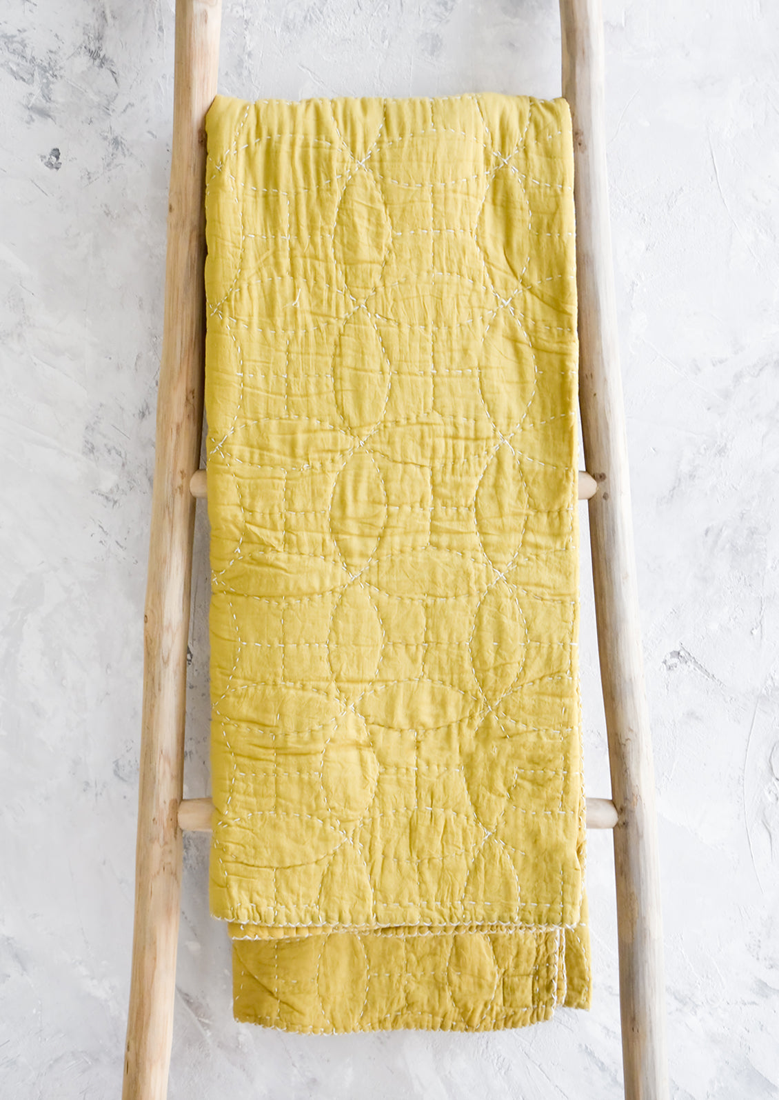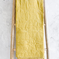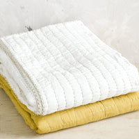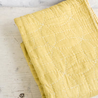 Soft, gauzy cotton is quilted in either vertical channels or loopy, overlapping circles on this lightweight throw, perfect for getting cozy on the couch or as a throw to keep on the bed.