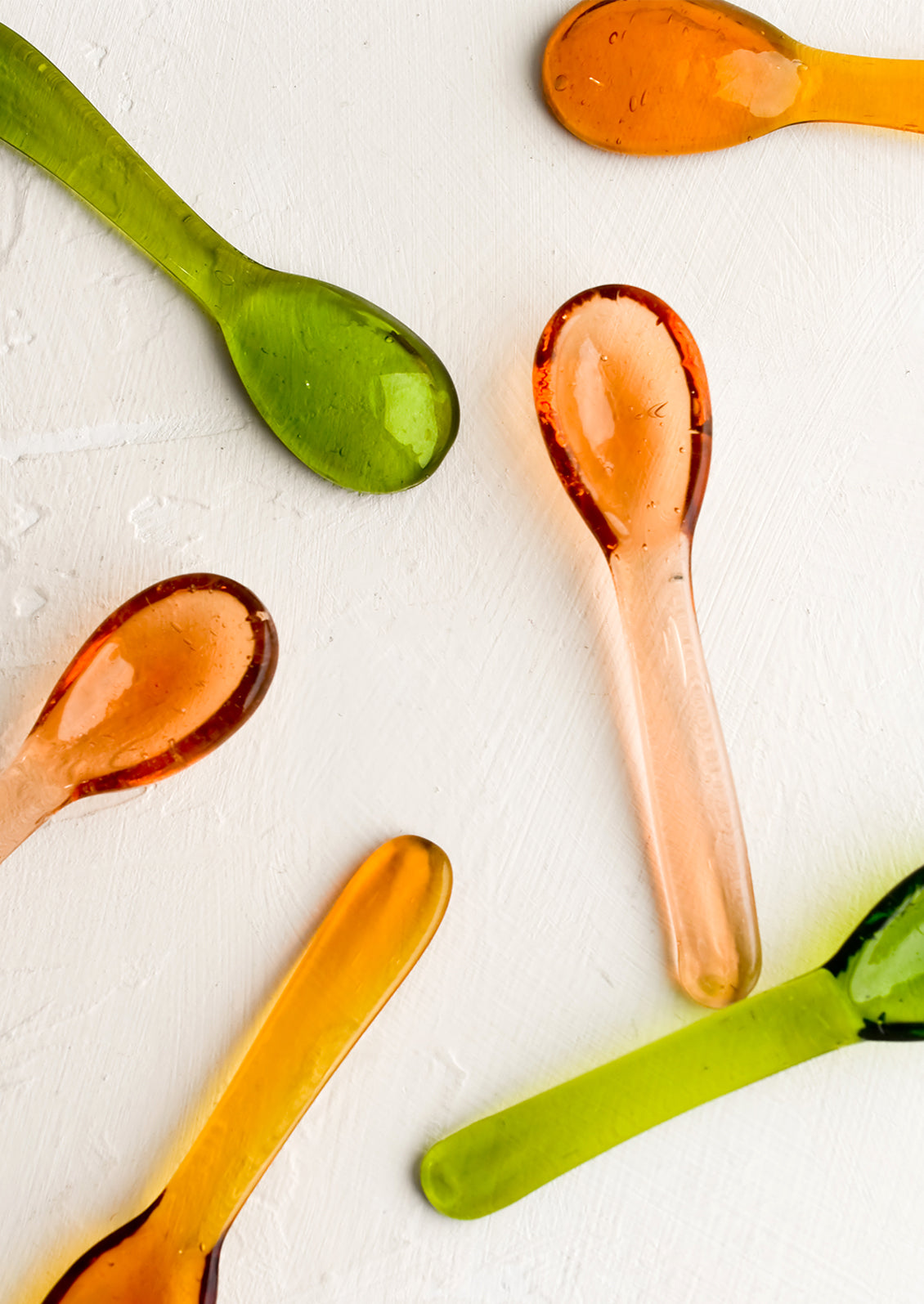 For those specific moments where you need a tiny spoon (salt, spices, mignonettes), it's unlikely to get much better than this one—available in three hues of vibrant recycled glass, they resemble tiny candies.