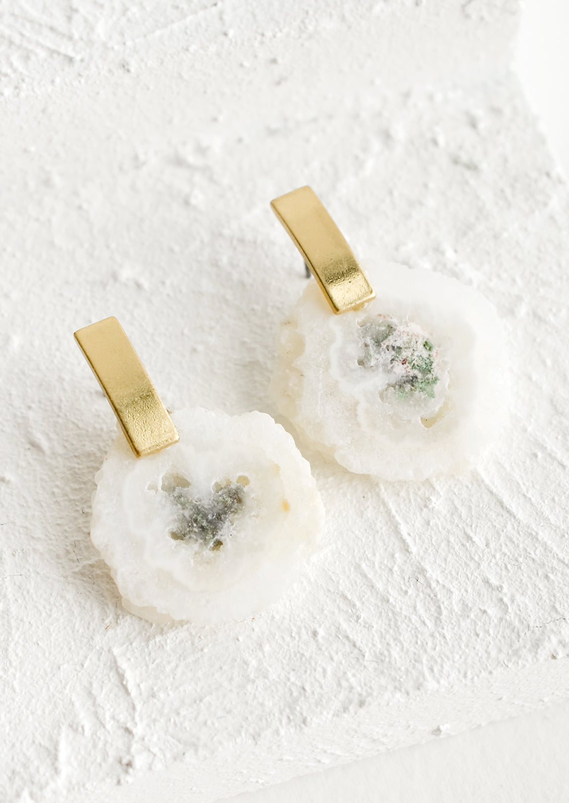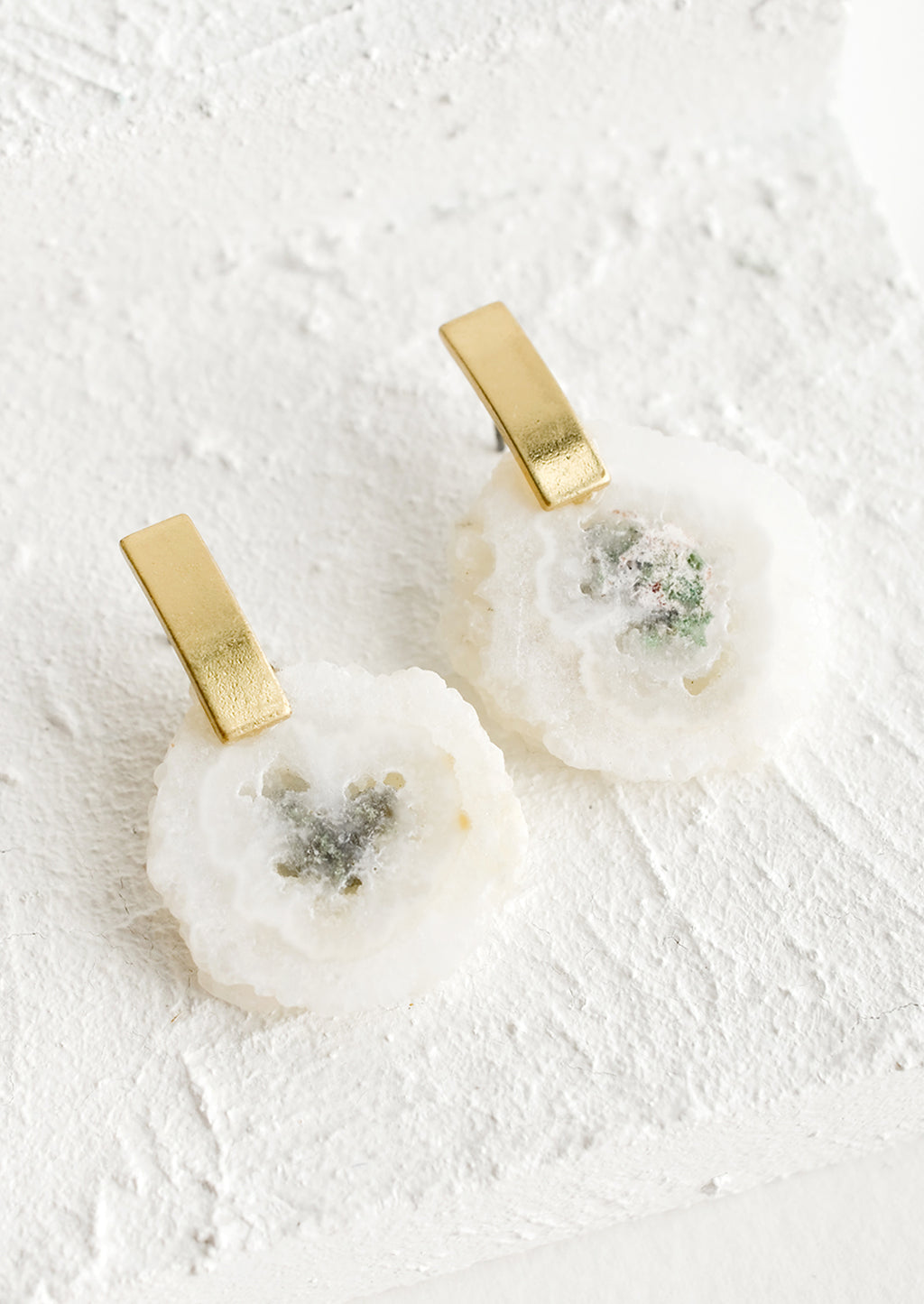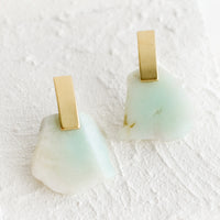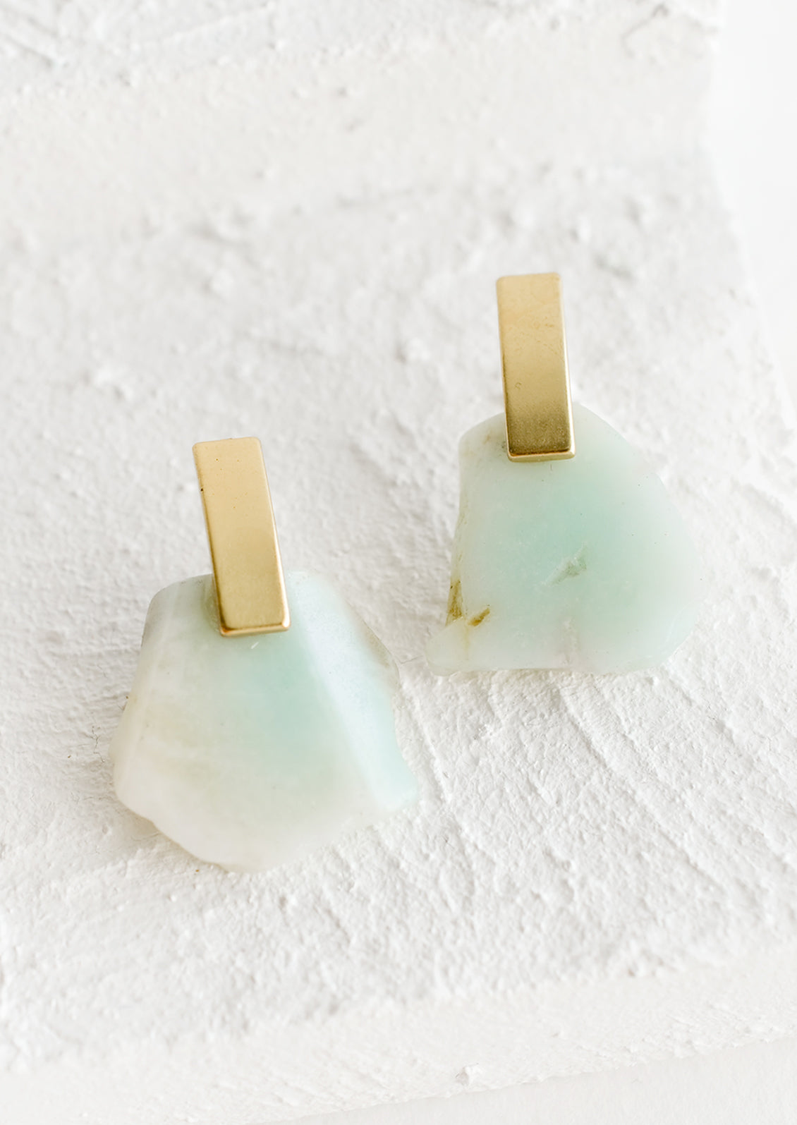 Unpolished gemstones in their raw, natural state give a modern feel to these timeless earrings. A sleek and simple golden post completes this sophisticated silhouette.