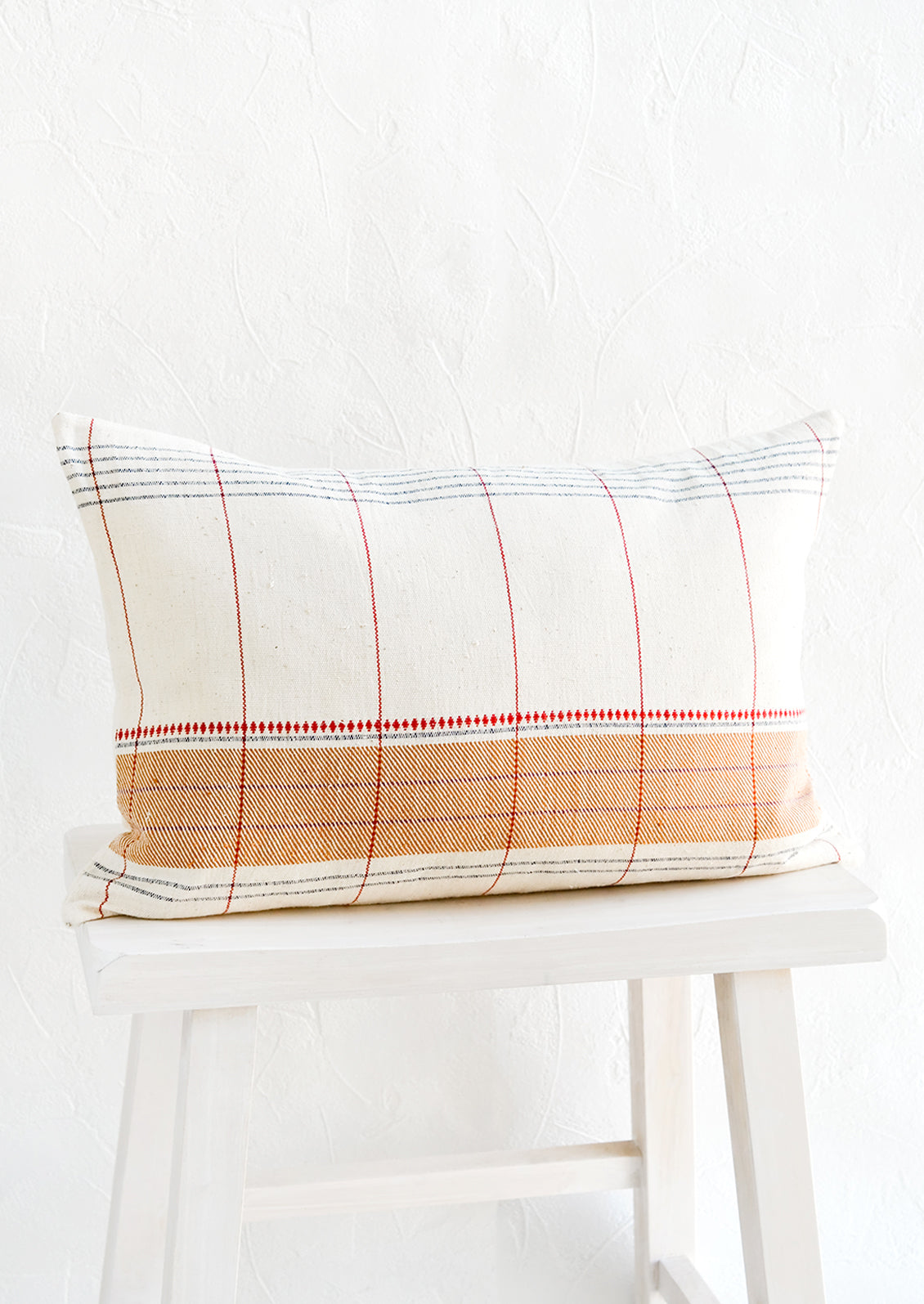 Handcrafted from heirloom organic kala cotton grown in Gujarat, India, this beautifully embroidered pillow is handwoven on a traditional wooden loom by an artisanal community of weavers.