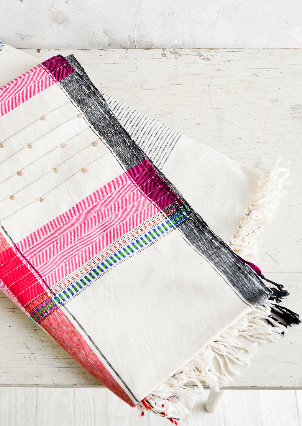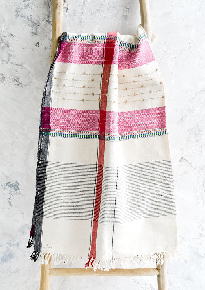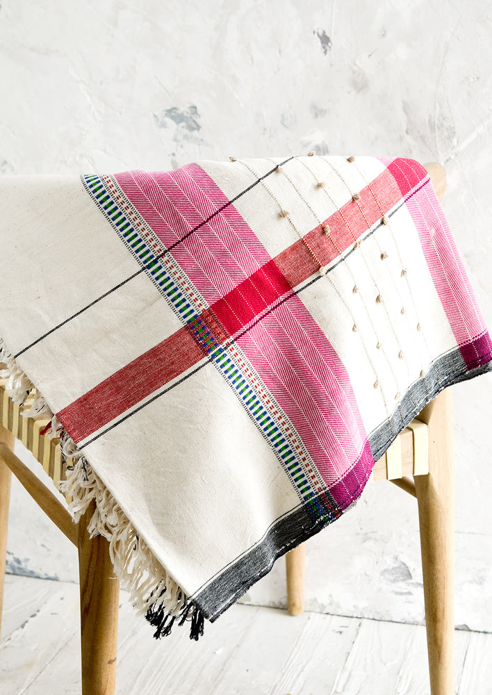 Handcrafted from heirloom organic, unbleached kala cotton grown in Gujarat, India, this artfully detailed throw is handwoven on a traditional wooden loom by an artisanal community of weavers.