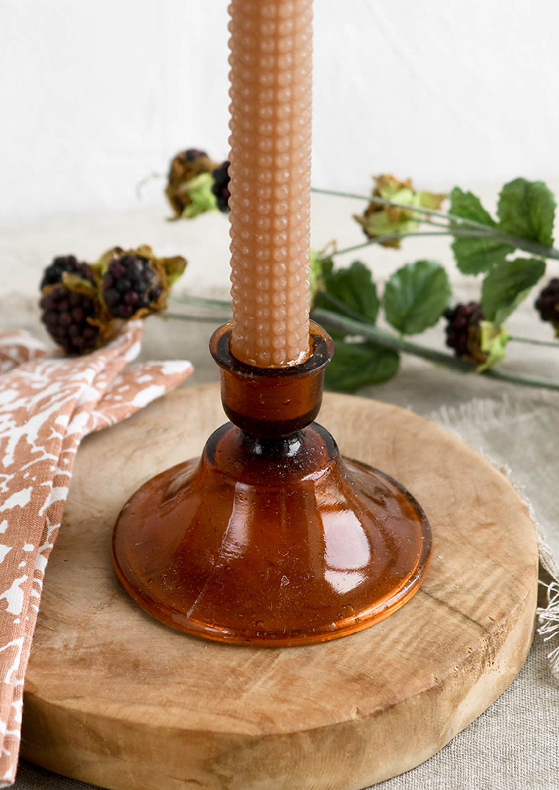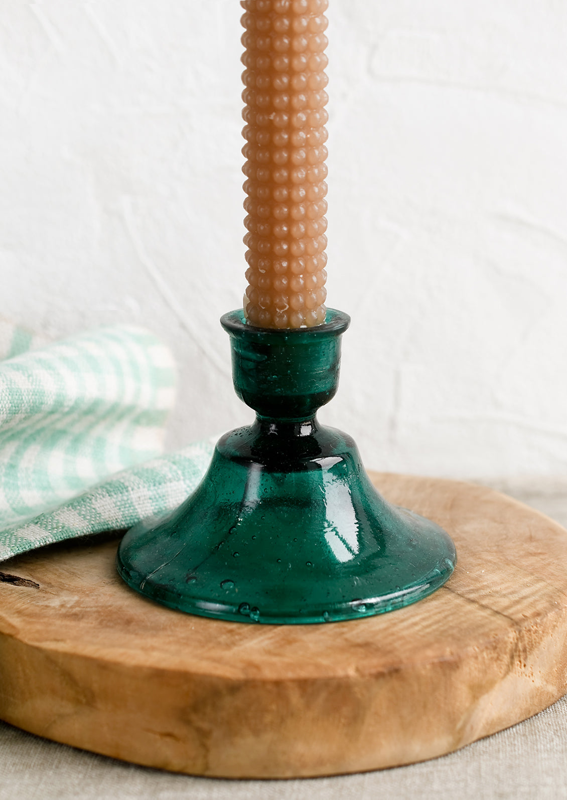 Inspired by traditional Moroccan glassware, these tinted glass taper candle holders show off a timeless silhouette, crafted in recycled glass rich with character.