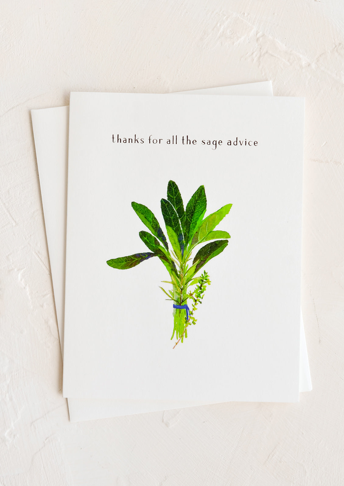 A cheeky little pun is beautifully illustrated with a bundle of fresh herbs on this appreciative greeting card.
