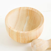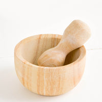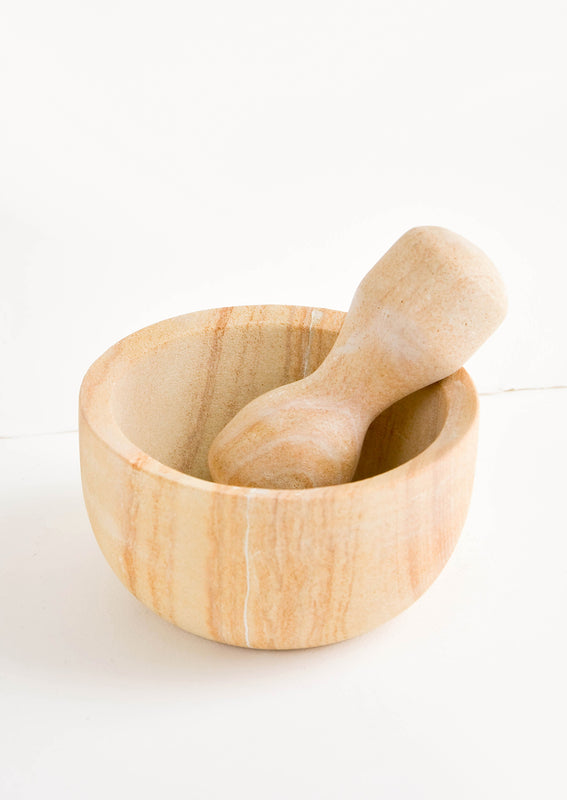In an extra-large size suitable for larger items (hello, homemade guacamole), this majestic mortar and pestle is crafted in solid, heavy-duty sandstone—each one shows off a different stone pattern with its own planetary patterning.