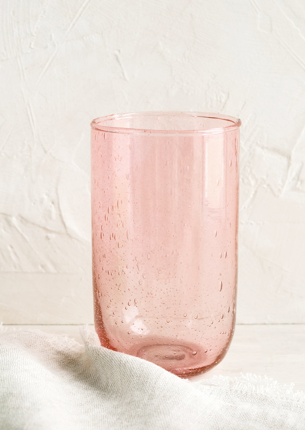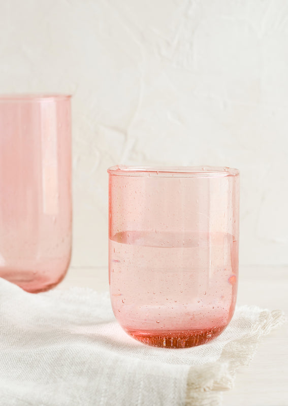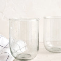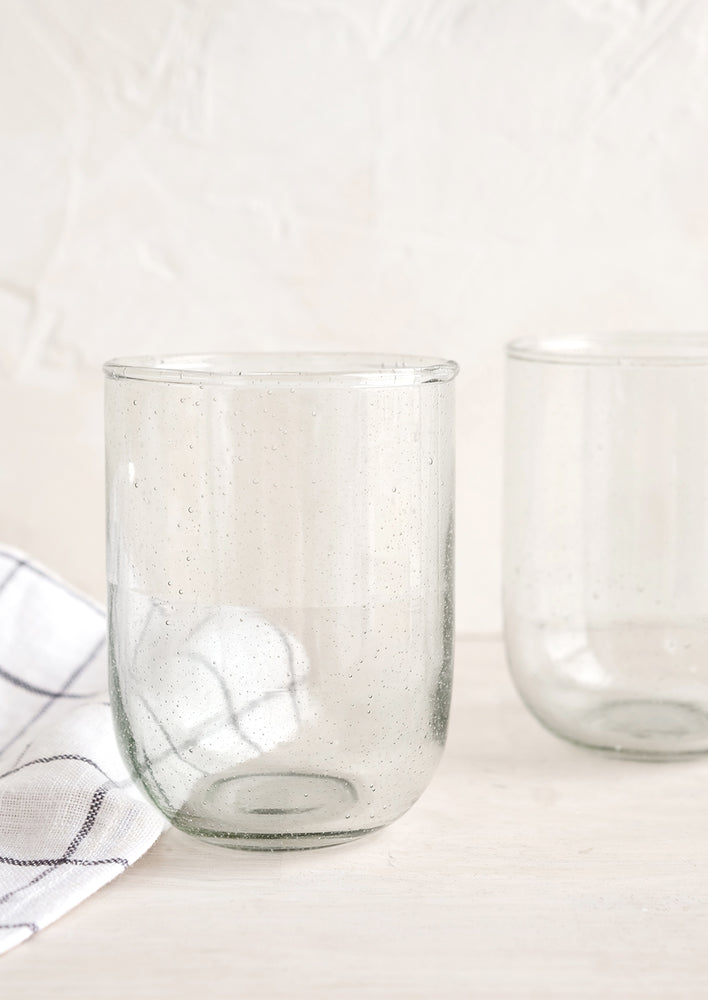 Showing off wabi-sabi beauty, this seeded glass tumbler comes in two convenient sizes: an 8 oz size, perfect for wine or water by the bed, and a 16 oz size, roomy enough for cocktails, lemonade, or iced coffee.
