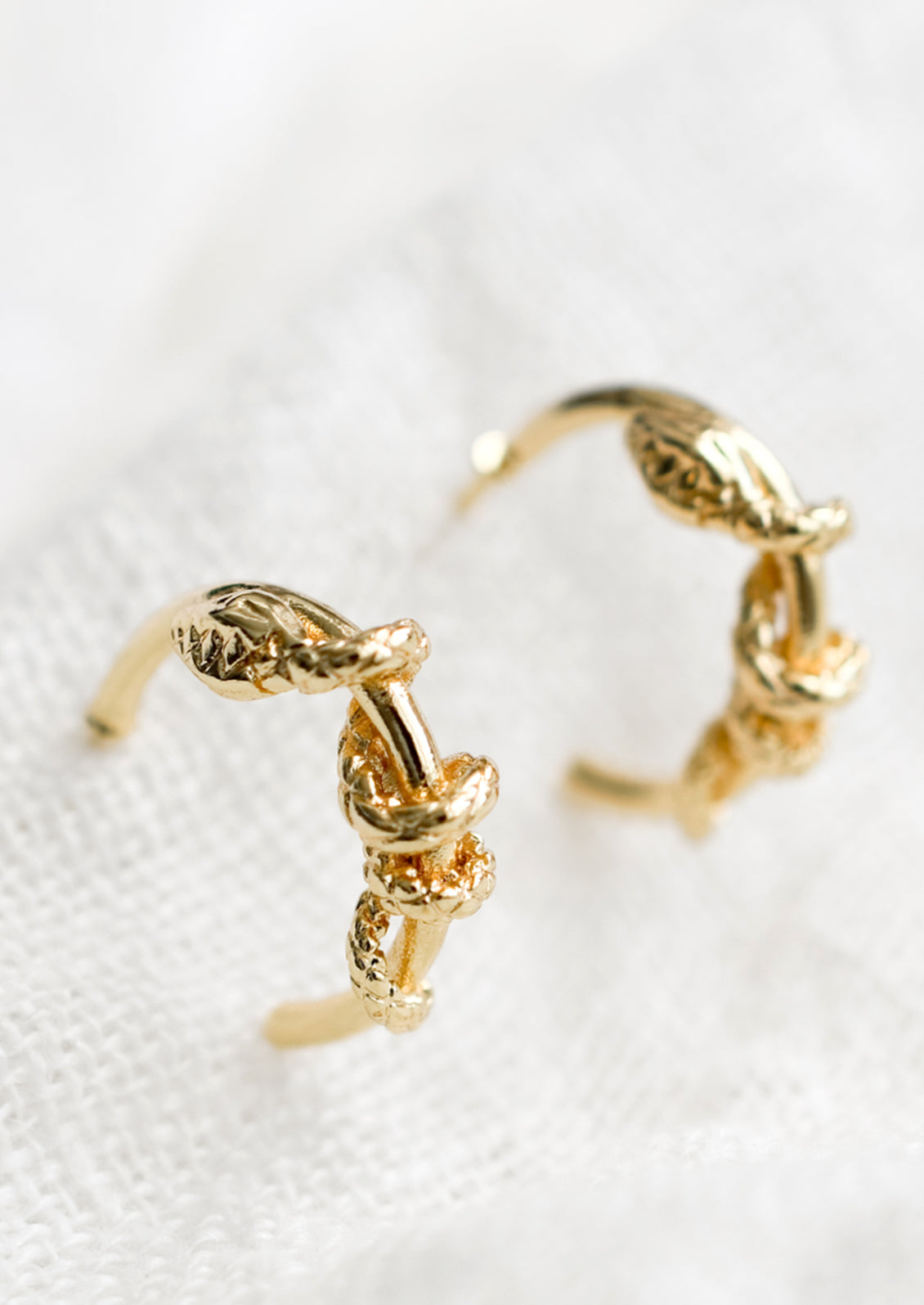 A golden serpent coils itself around these timeless hoop earrings, perfect for everyday wear with a slithering twist.