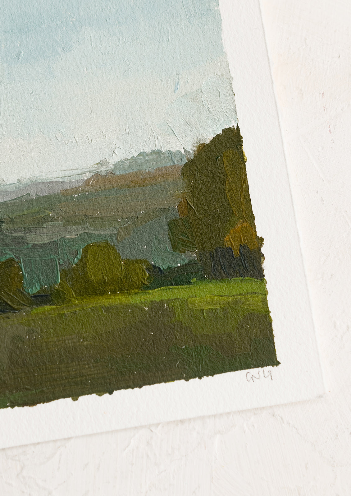 Painted from photos taken on artist Caroline Gray's travels throughout the Southeastern United States and Italy, this tiny landscape oil painting shows off a pastoral scene. An original, one of a kind piece of art, each piece is based on a different location.