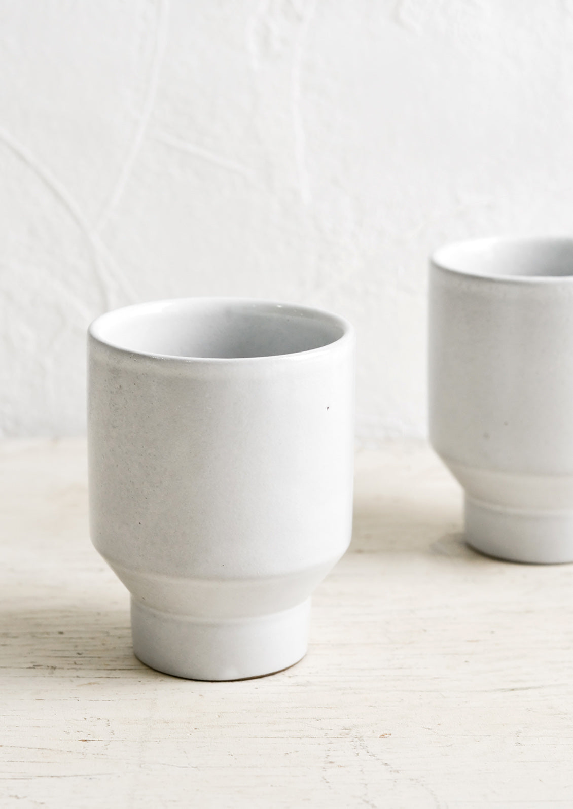 In a sublet-yet-striking geometric silhouette, these ceramic cups are the perfect small size for tea, sake, espresso, or can be used as a bathroom or bedside cups.