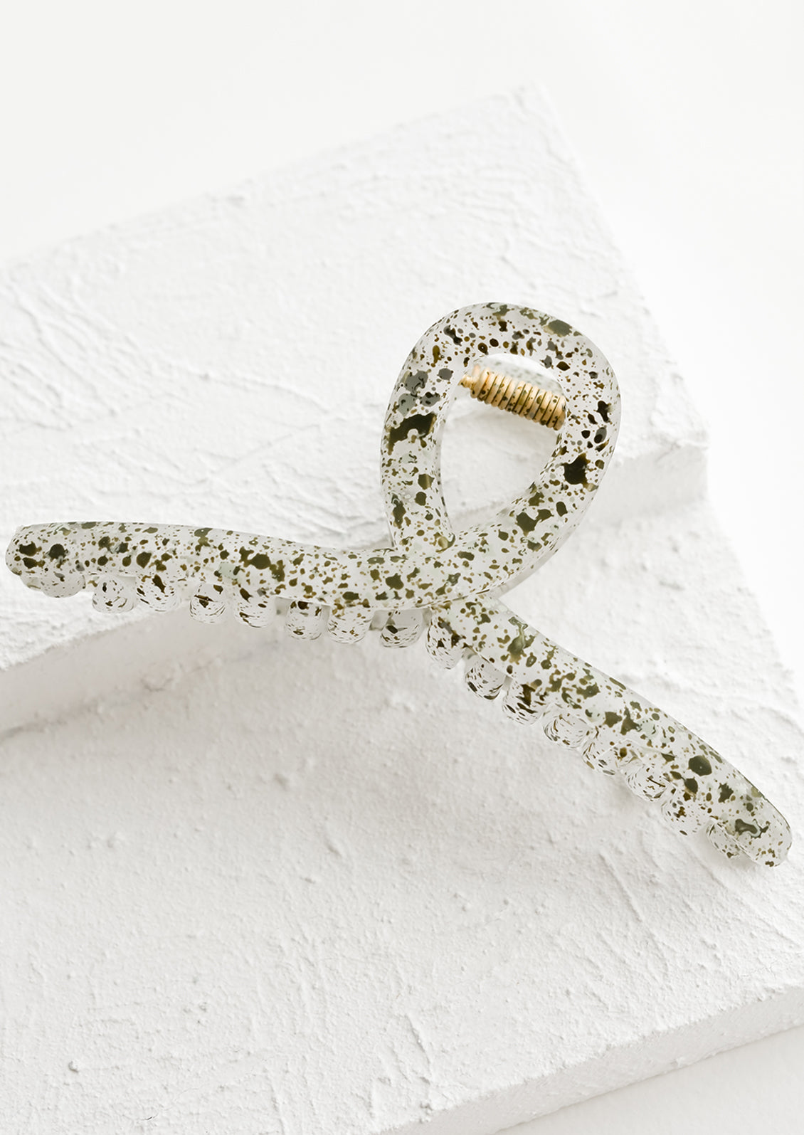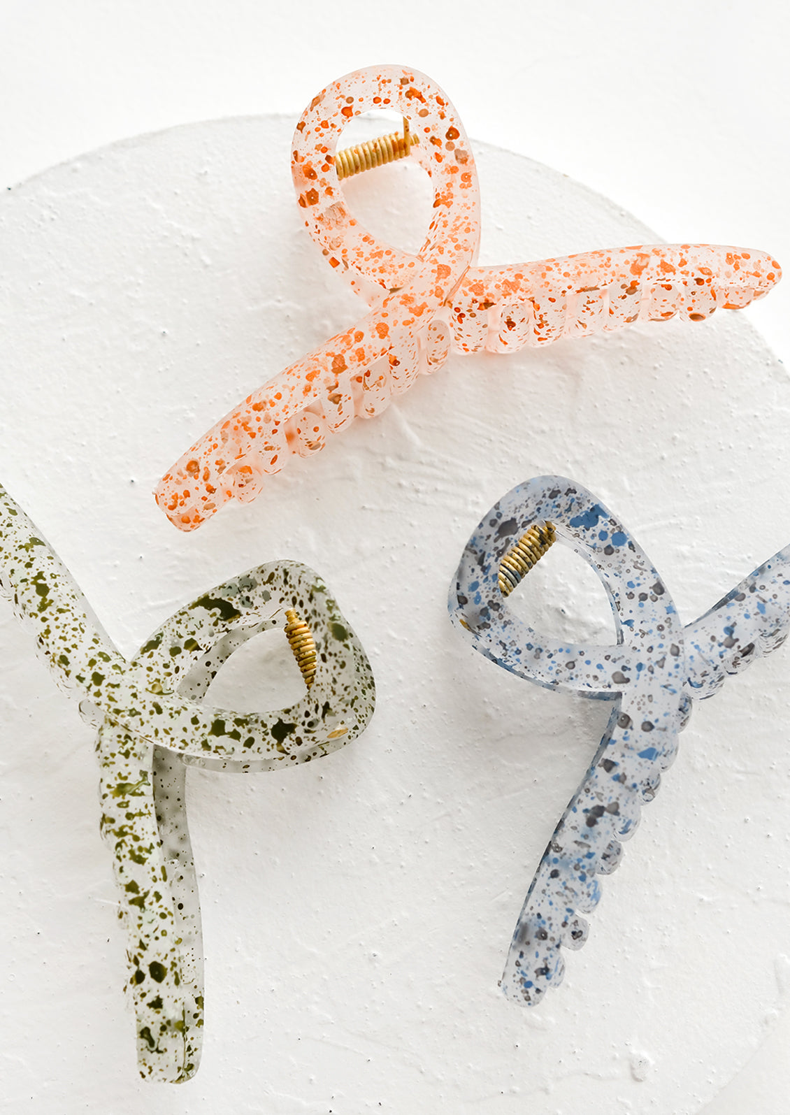 In a matte, soft-touch finish, these satisfyingly speckled hair clips take on a French twist silhouette.