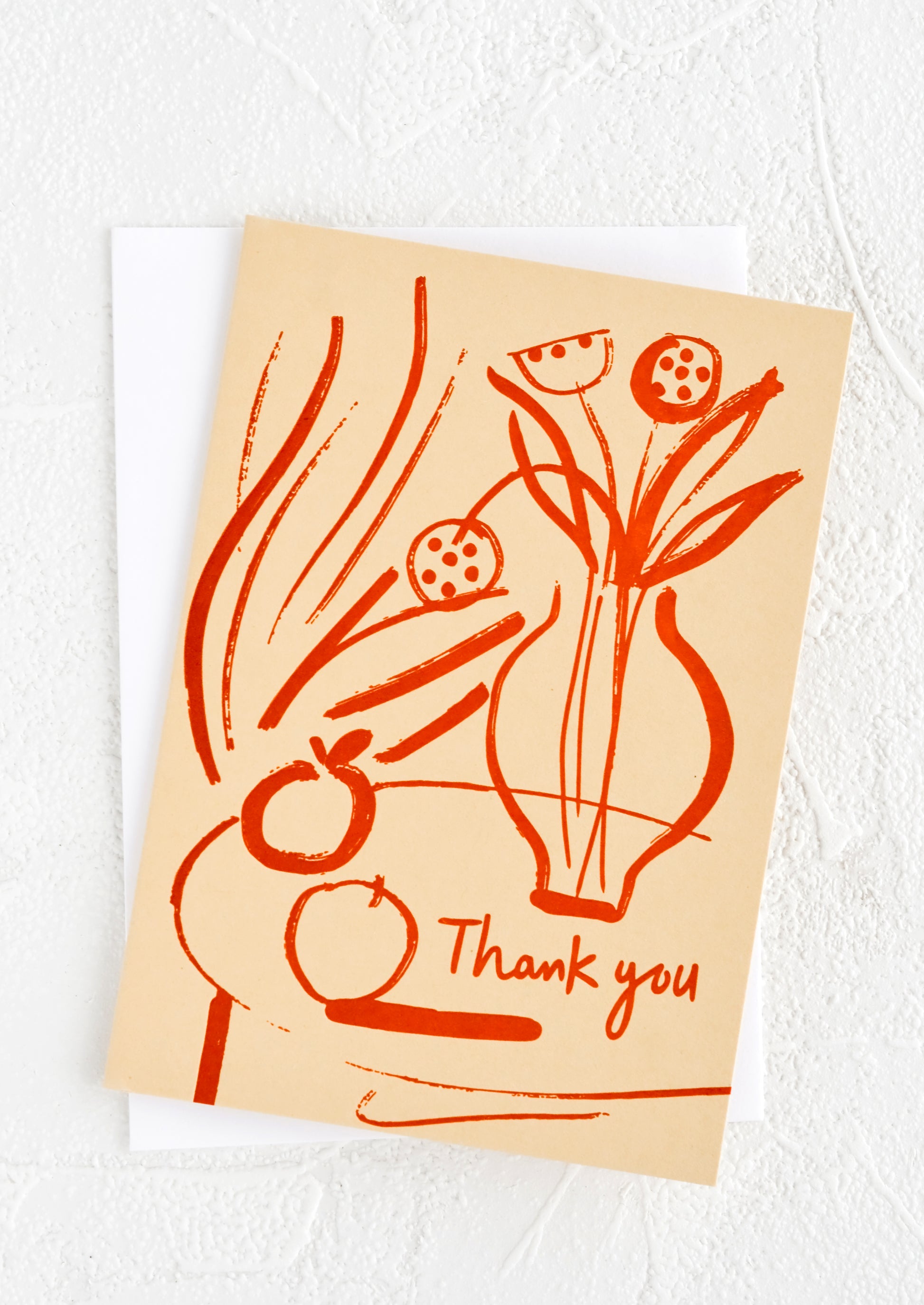 Letterpress printed, this thank you card debuts an earthy palette and an artful still life scene. From Wrap Paper.