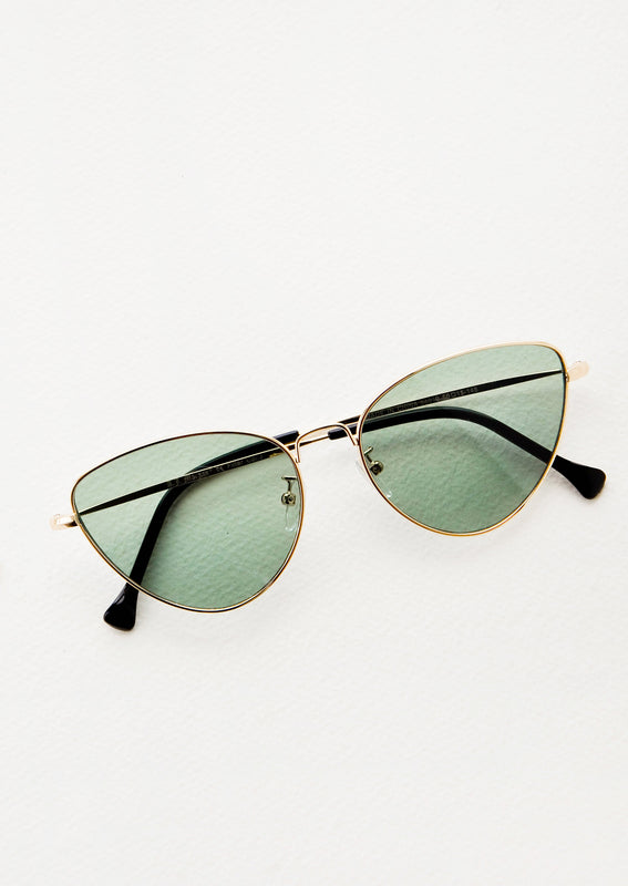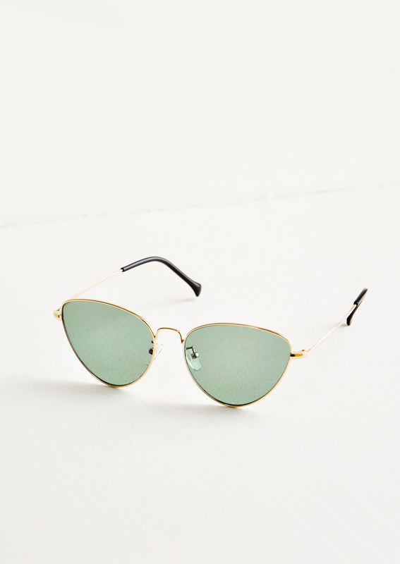 Metal frames are super in these days, and these sleek sunnies combine a golden frame with tinted green lenses for cool contrast.