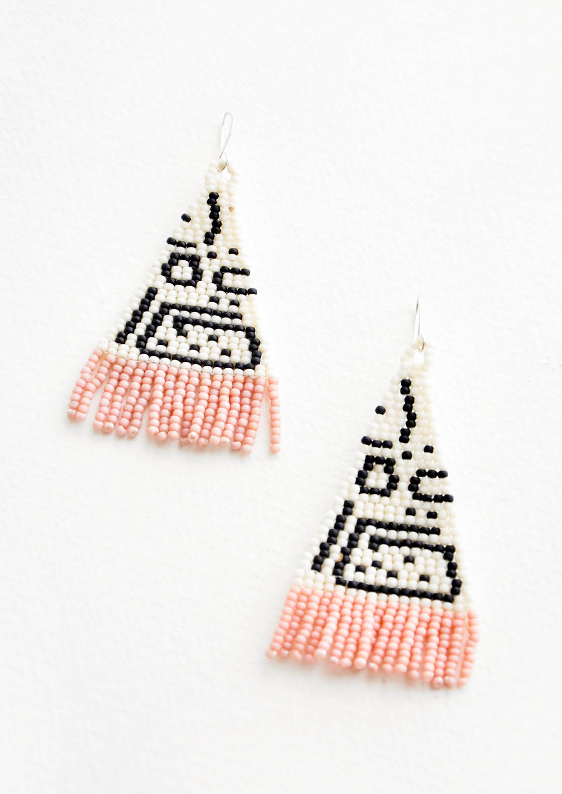 Hand beaded by artist Shell Ji, these patterned pretties show off a monochrome palette with a soft blush trim for a picture-perfect display of modern femininity.