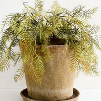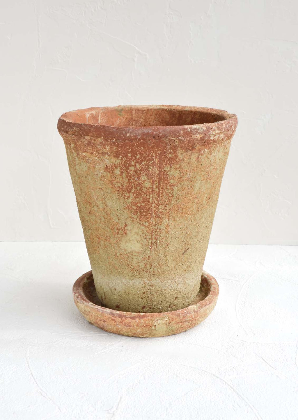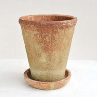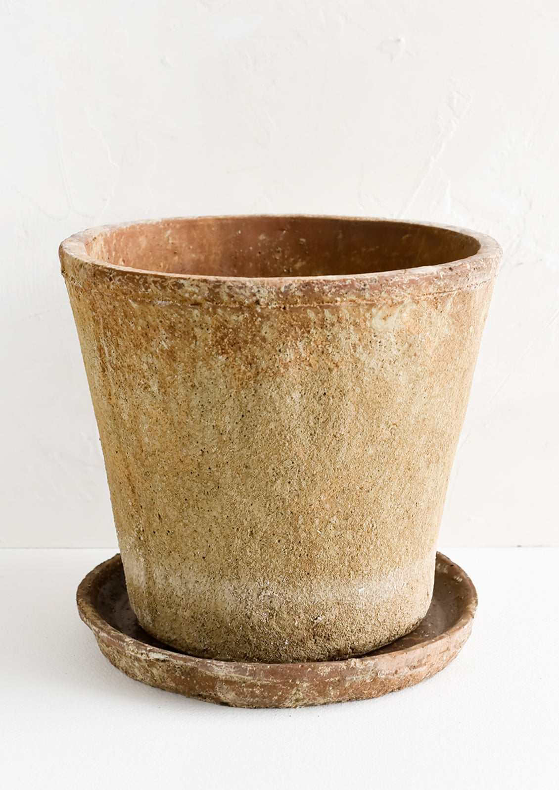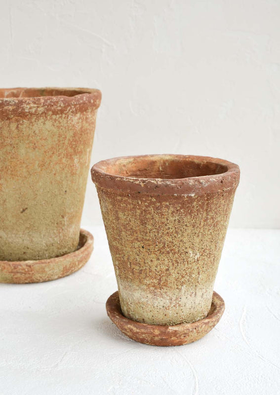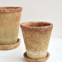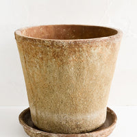 Rich, rustic texture gives an old world feel to this terracotta planter, flaunting a patina akin to an ancient artifact, indoors or out.