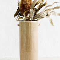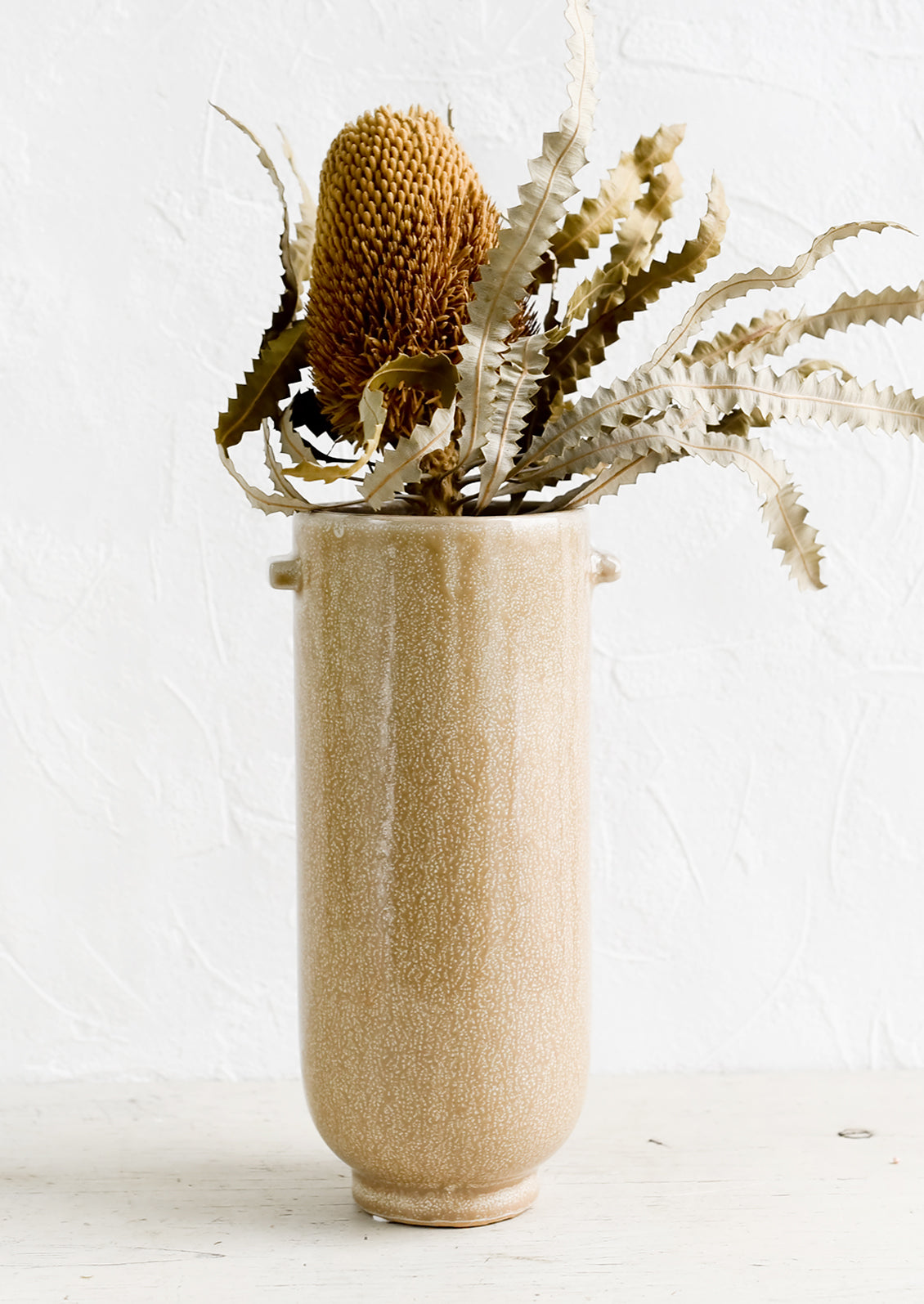 A tall and slender silhouette gives a statuesque feel to this ceramic vase, thoughtfully detailed with decorative tabs for an antique-inspired feel.