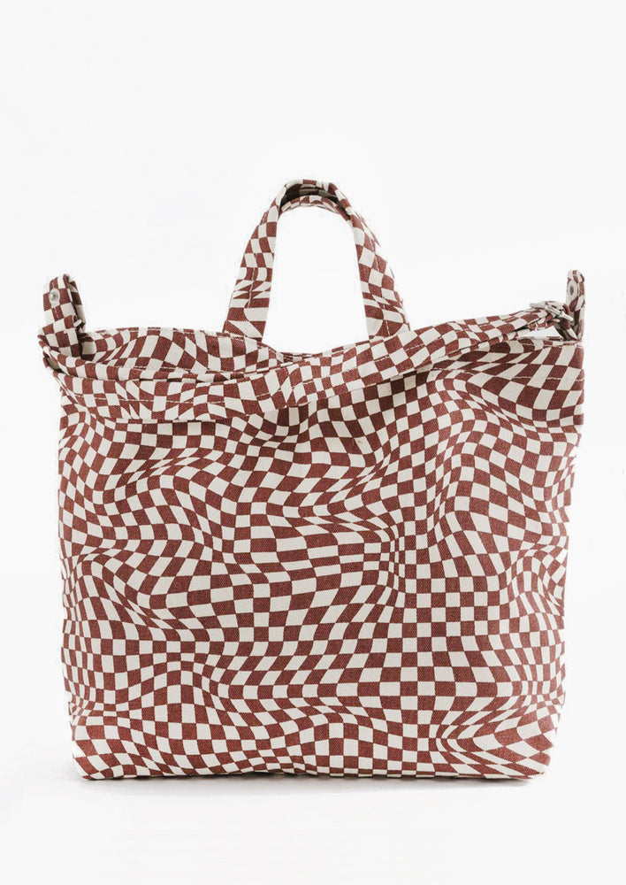 The perfect everyday bag, rendered in durable recycled cotton canvas in an on-trend checkered print (with a twist). From Baggu.