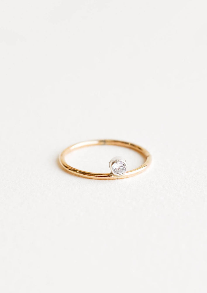 We love this subtle take on the mixed metal trend — a sparkling cubic zirconia is framed in a sterling silver bezel and set on a 14k gold fill band.