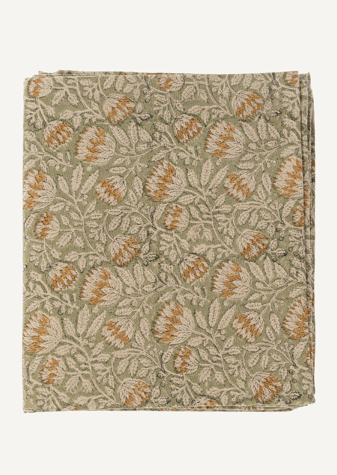 Crafted in a 50-50 cotton/linen blend, this block printed tablecloth exudes a perfectly lived-in feel.