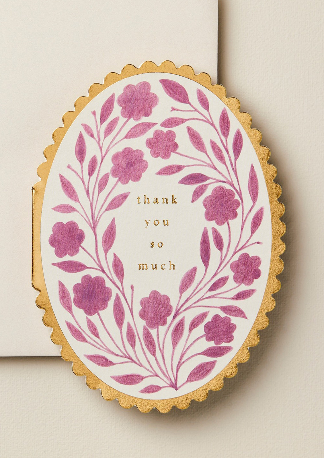 Details Gold foil detailing and scalloped edges