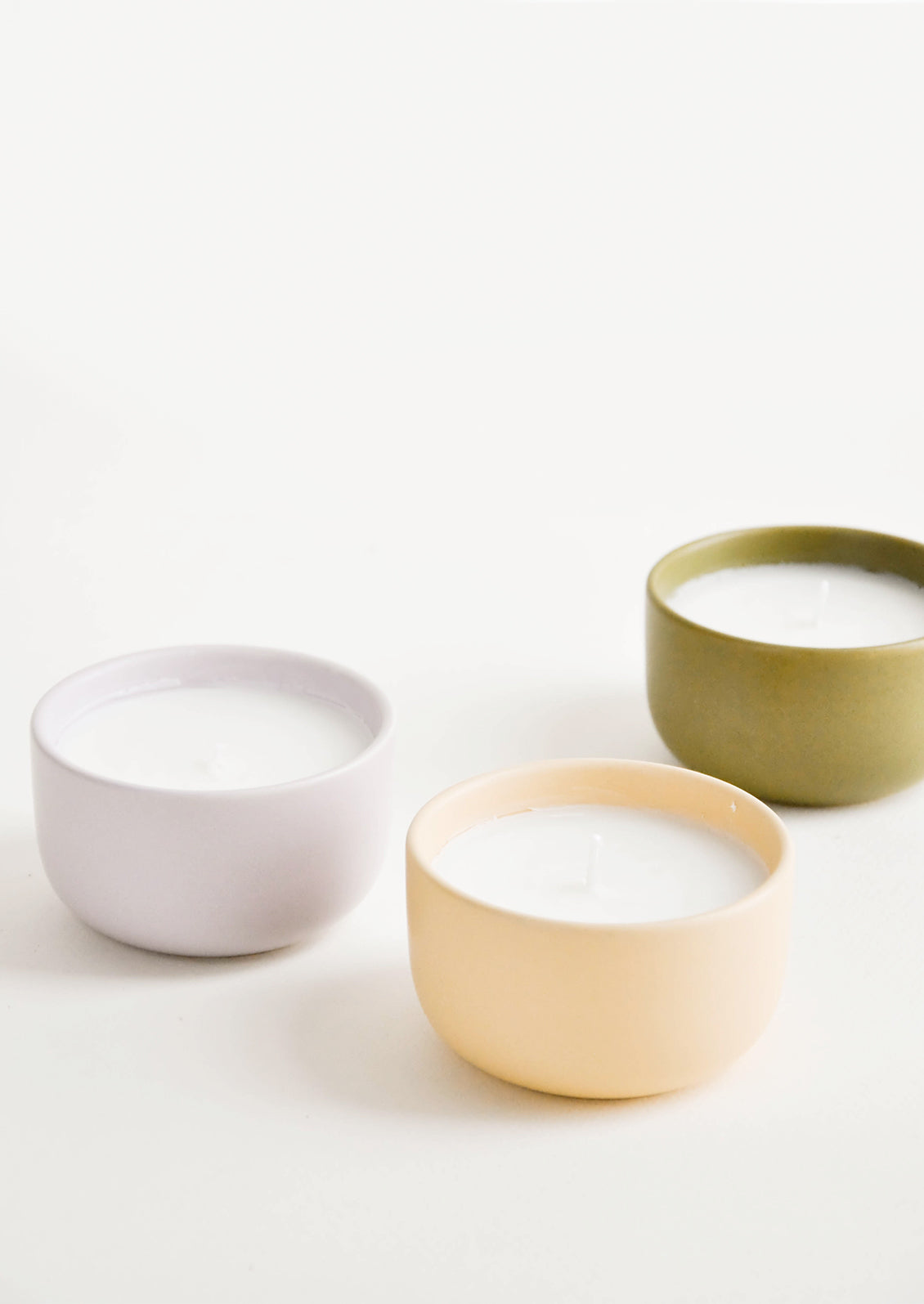 In bright, lively scents, these beautifully contained candles show off a sleek ceramic vessel in a complimentary hue.
