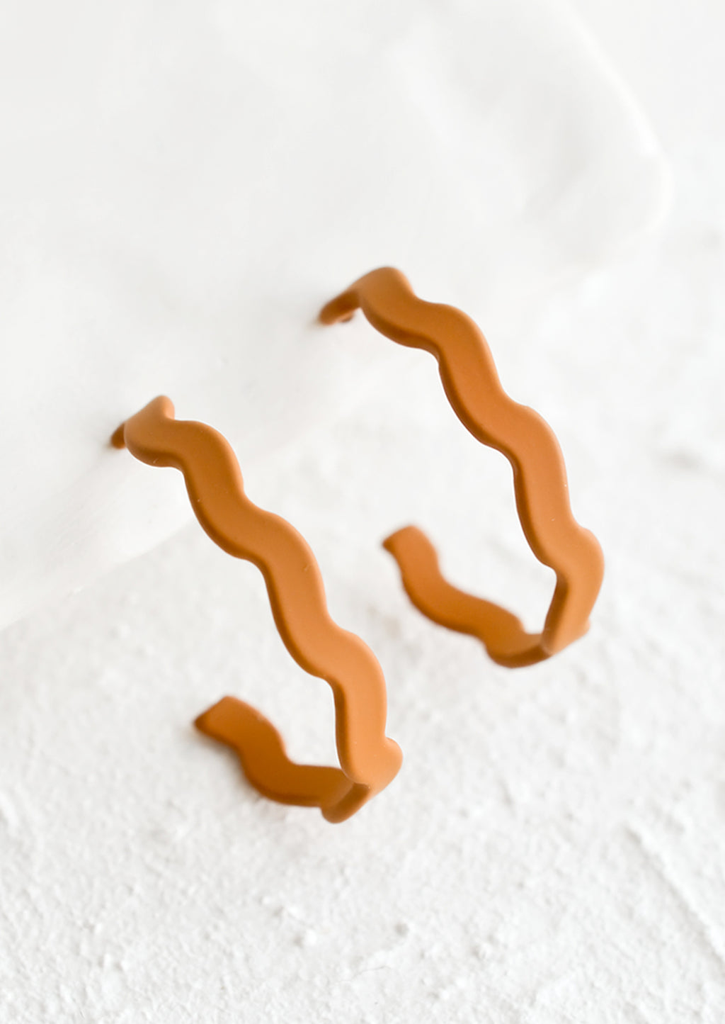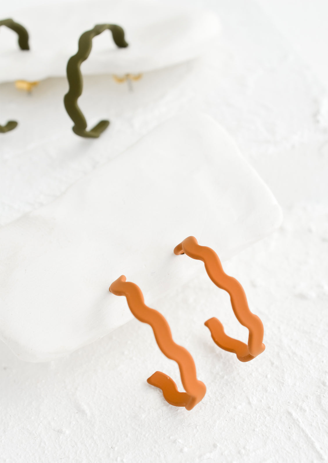 In a yummy, super-satisfying soft-touch texture, these easy-to-wear earrings take on a squiggly shape and a timeless hoop silhouette.
