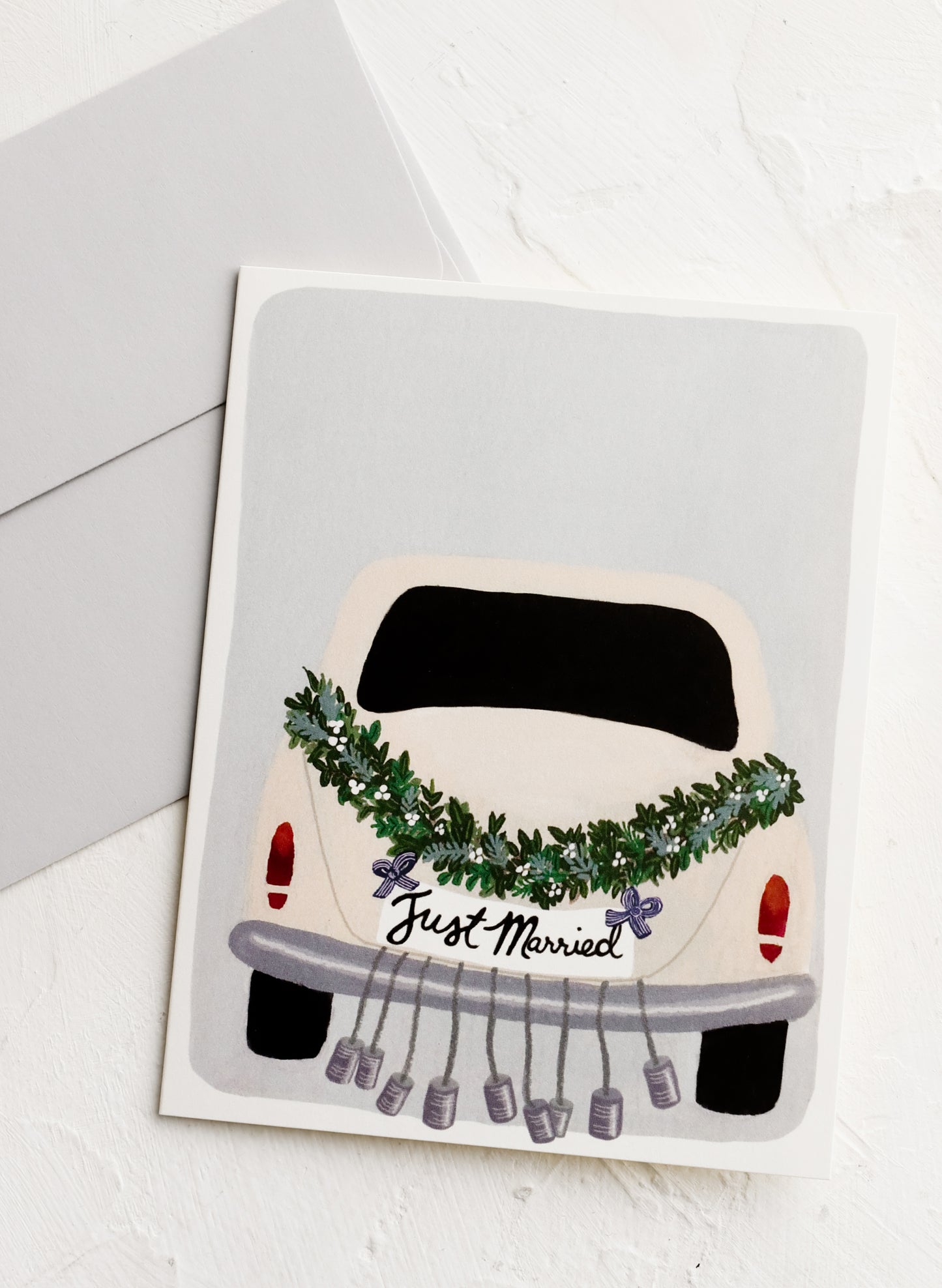 A getaway car for the adventure of a lifetime, marriage! This illustrated card celebrates the happy couple in style.